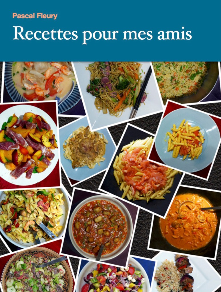Il y a quelques années, j’ai commis un livre de recettes qui ont fait le bonheur de mes amis, de ma famille, de mes invités. On le trouve en iBook, mais aussi sur Amazon : https://amzn.eu/d/90289XT