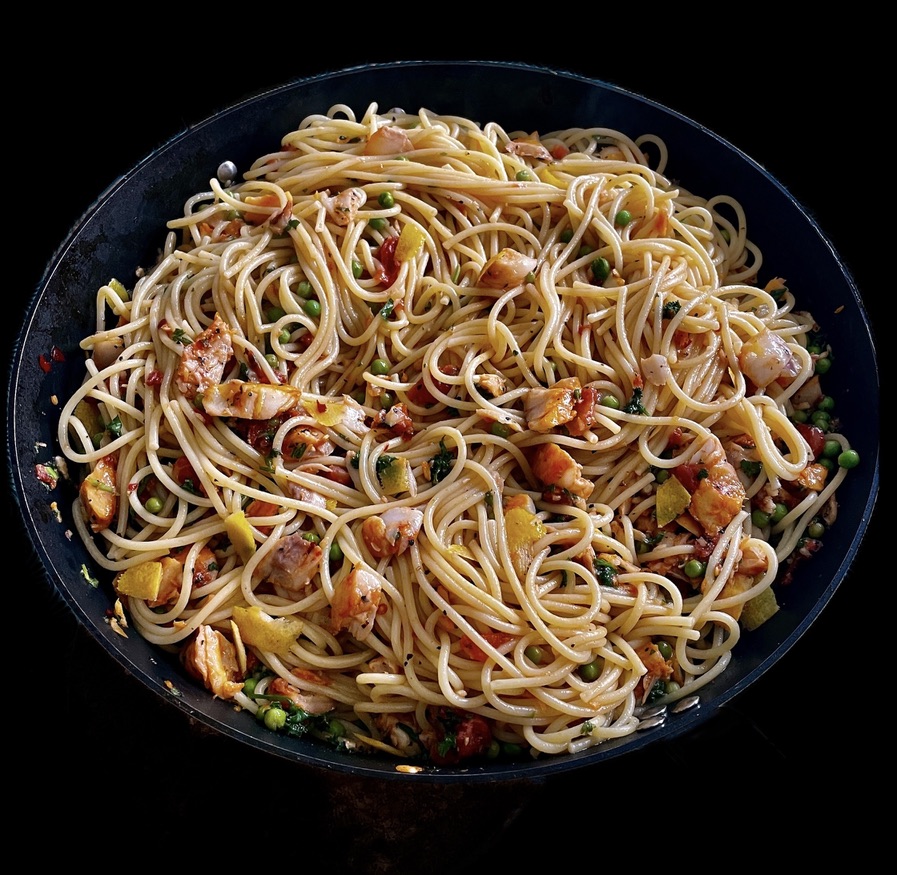 Pour commencer on prend des capellini, des spaghetti si fins qu’il ne faut que trois minutes pour les cuire.