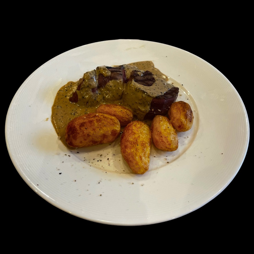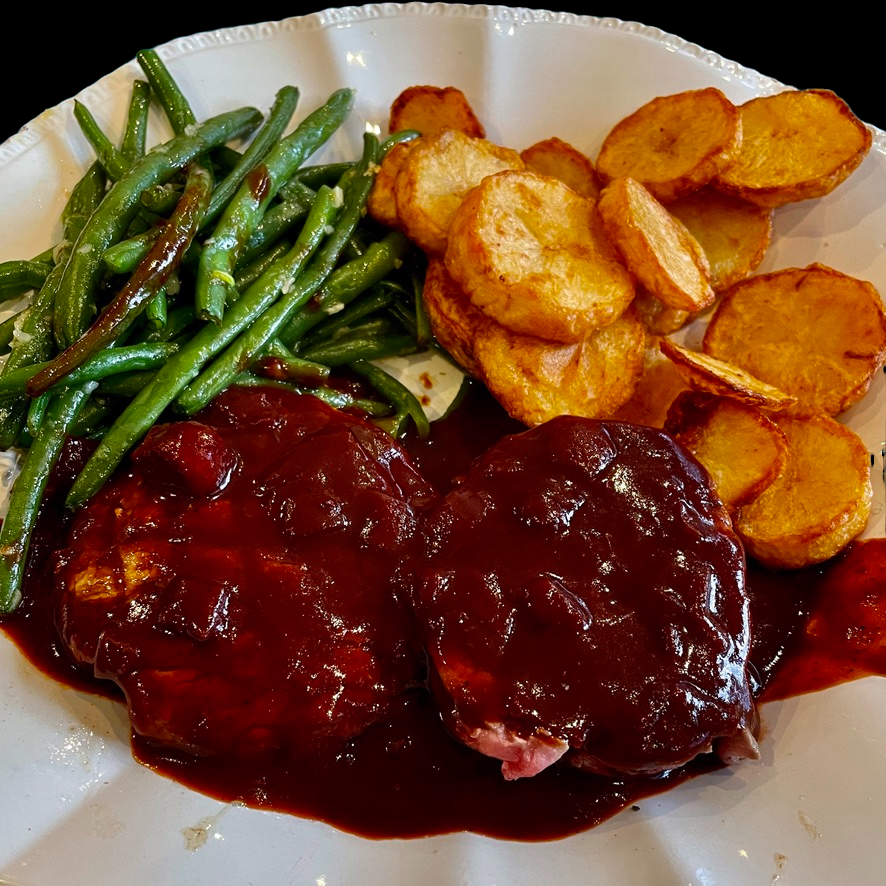 Il ne reste plus qu’à couper le filet mignon en grosses tranches, de dresser vos assiettes et de manger le tout.