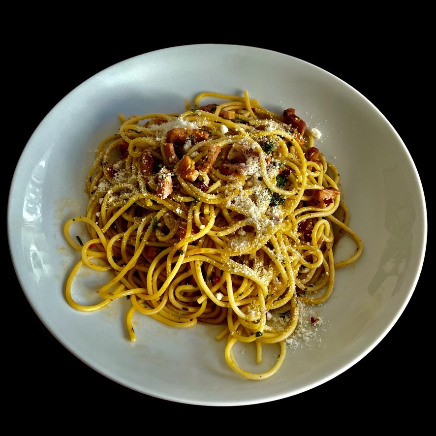 Et pour les ceusses qui savent pas : on ne met pas de fromage sur les pâtes au poisson ou aux fruits de mer.
