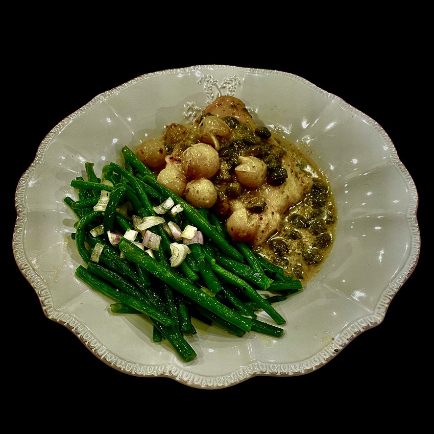 Pour servir, ajoutez les haricots verts. un petit filet de jus de citron et tout est bon.