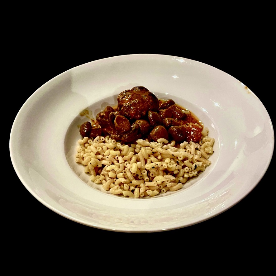 Ce plat se sert avec du riz, des pâtes fraiches ou des pommes sautées.