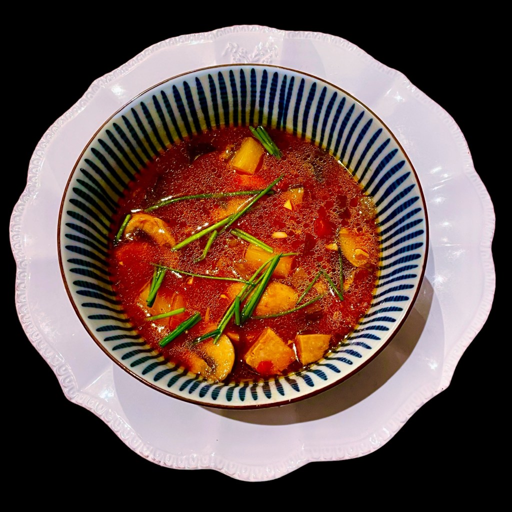 – on peut rajouter des herbes et toute ce qu’on a envie de rajouter car c’est le principe de cette soupe