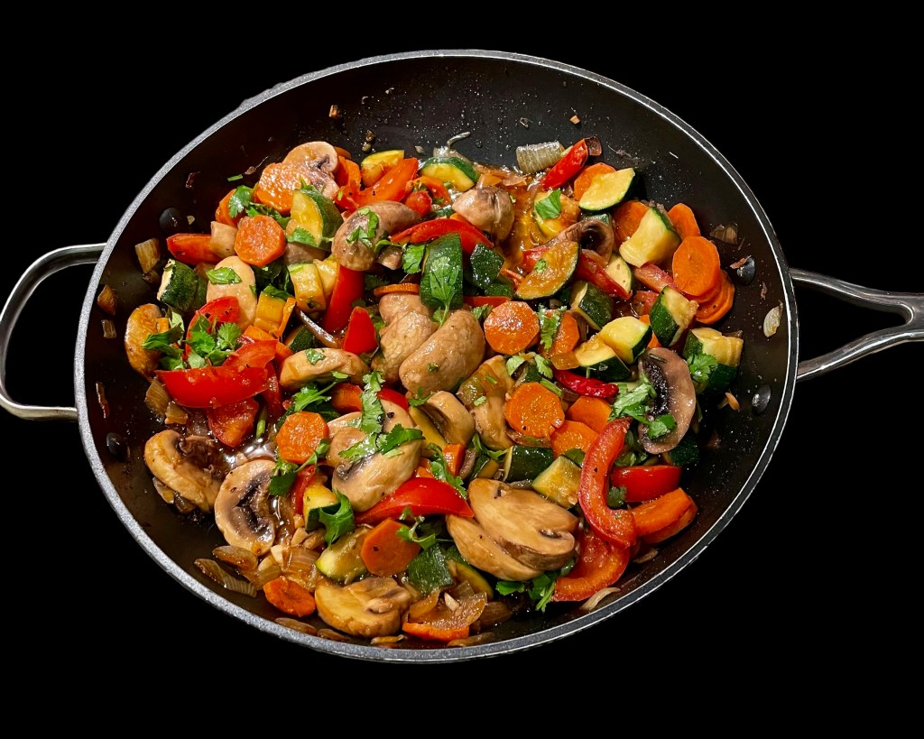 – une courgette et une carotte en julienne revenues dans un peu d’huile