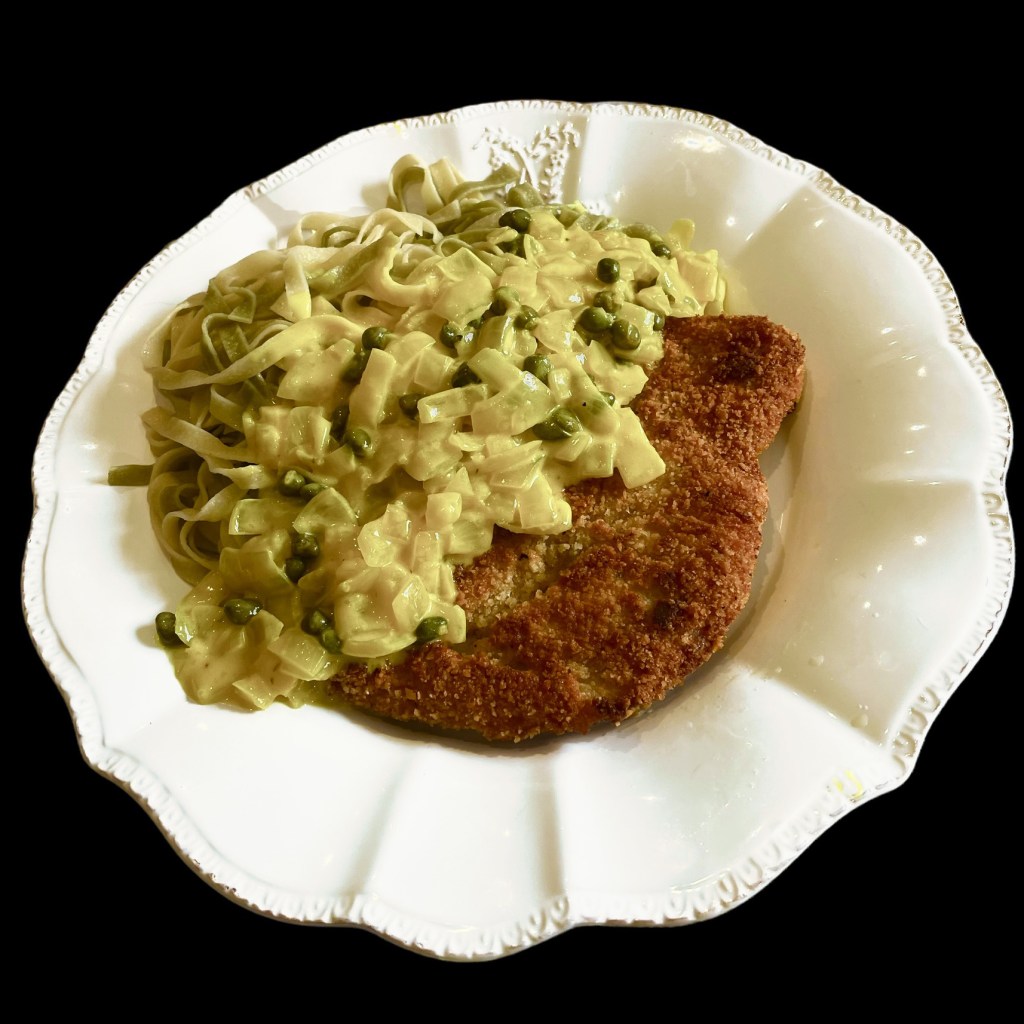 Dans mon petit wok, j’ai fait réduire de la crème liquide, une rasade de vin blanc, le jus d’un citron. Juste avant de servir, j’ai ajouté du sel et du poivre concassés, puis un jaune d’oeuf. J’ai bien touillé, puis j’ai ajouté les girasoli.