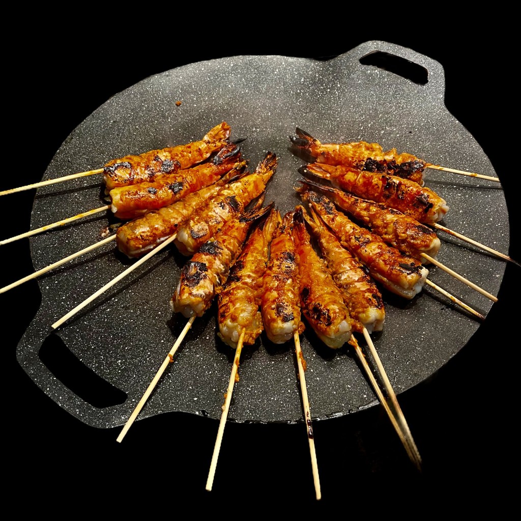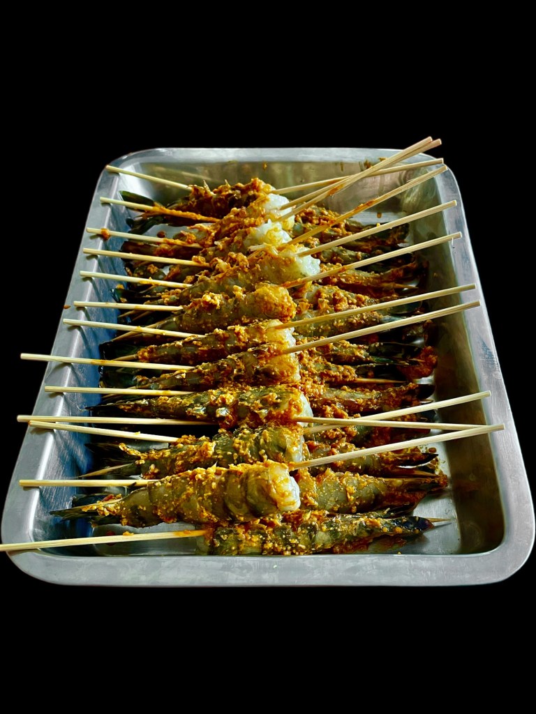 Des grosses crevettes que l’on a épluchées.