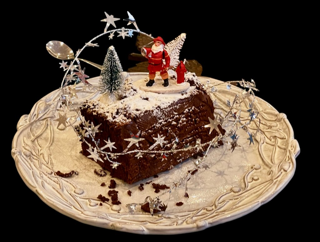 Cette année, Jackie a renoncé au XMas cake, ce gâteau qui peut survivre un siècle sous sa croûte de sucre et son coeur nourri au whisky. Elle n’a pas fait de XMas pudding, un boulet de canon fait de cambouis. Non, elle nous a fait une marquise au chocolat, presque sans sucre et avec du chocolat de grande qualité. Elle l’a servie avec de la « coutarde », in French for crème anglaise. Une tuerie !