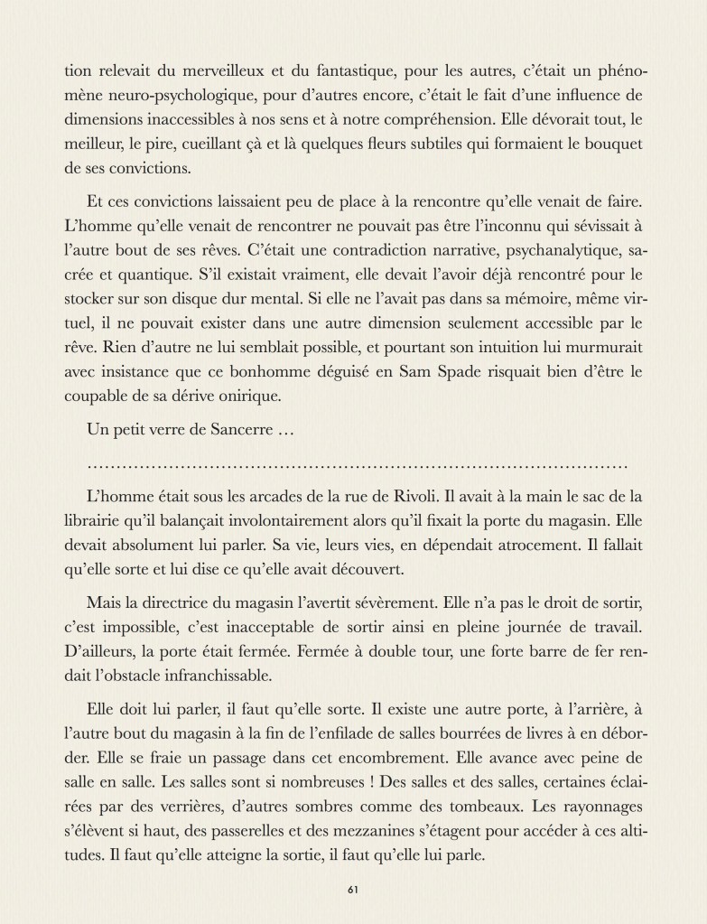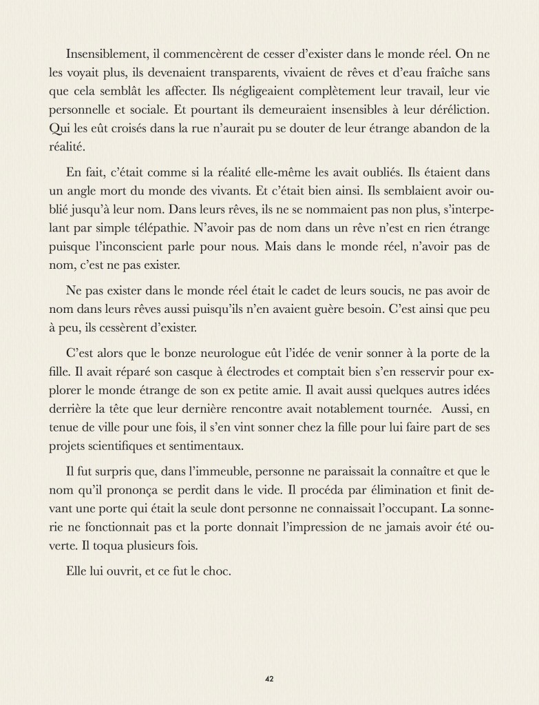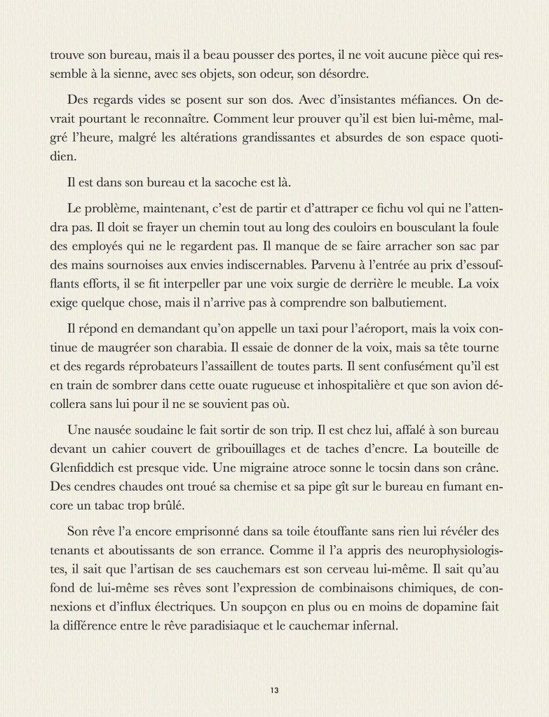 Voici mon nouveau roman. Il ne s’agit pas d’un ouvrage ventru et redondant, mais plutôt une petit bouquin condensé comme un rêve, en voici la présentation :