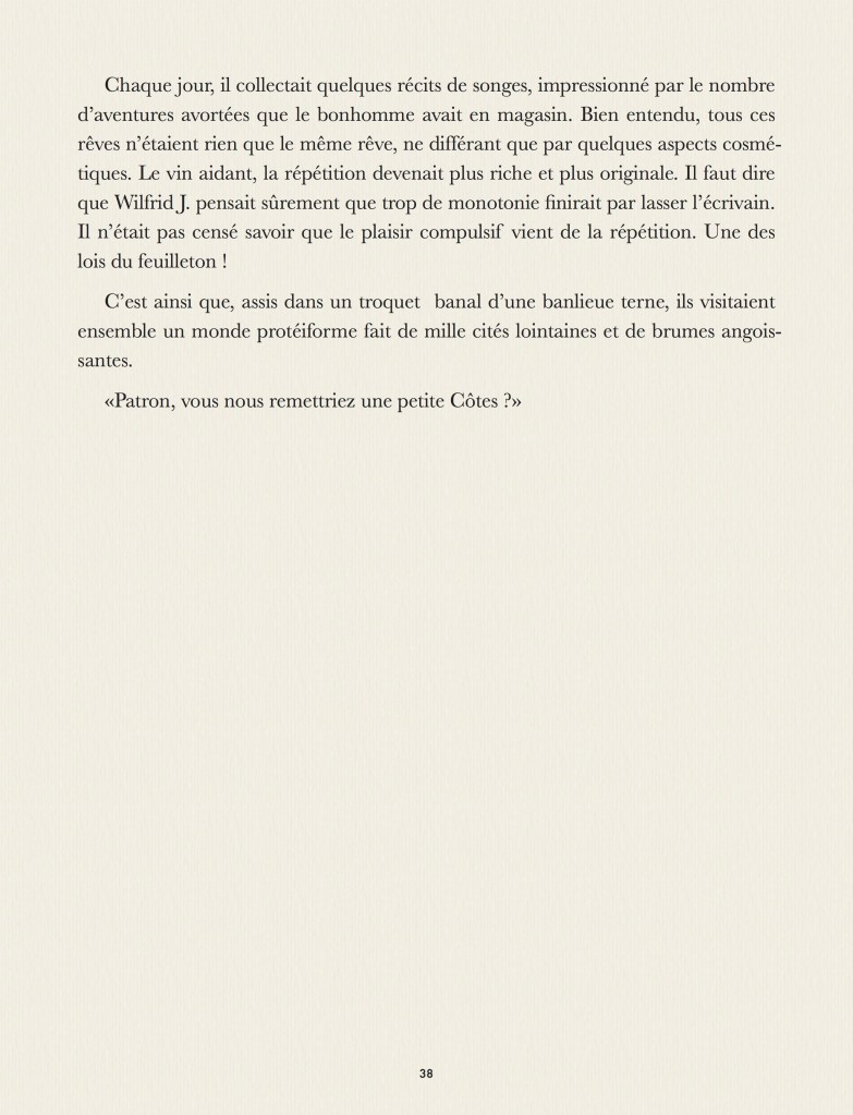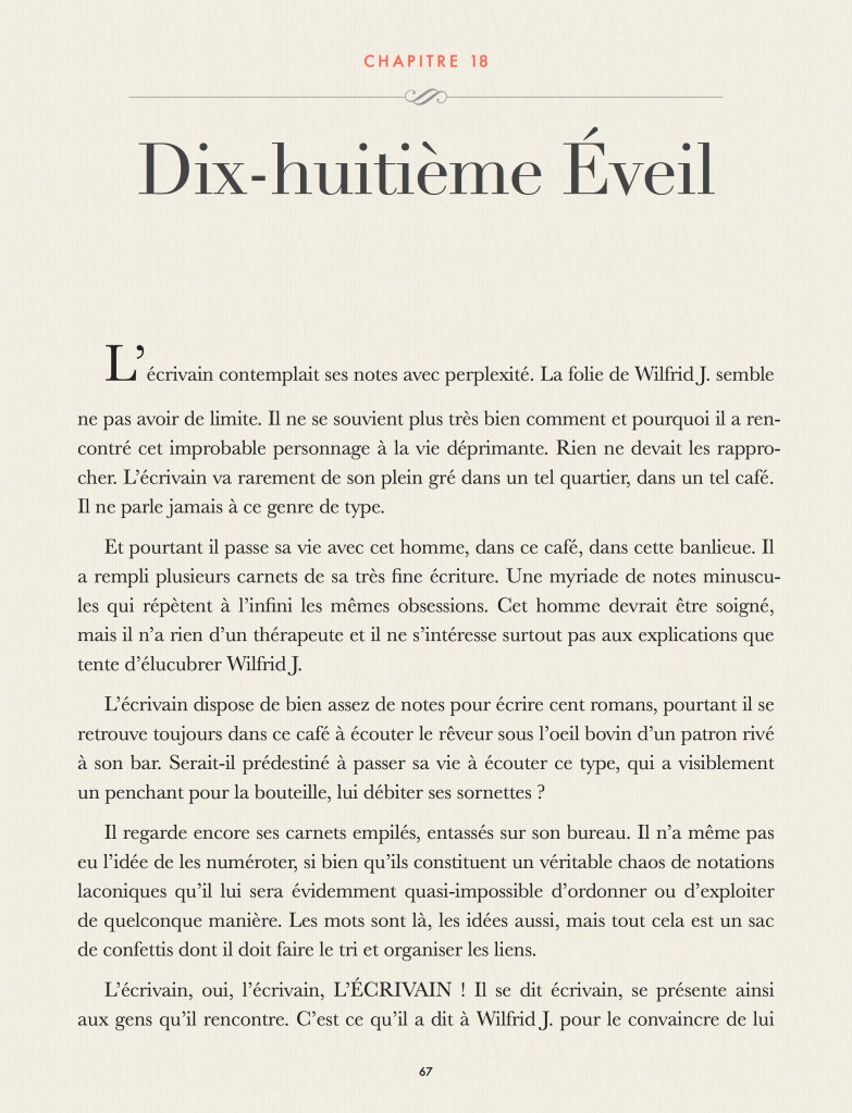 Et voici une nouvelle partie de cet immense roman qui refait le monde à la mesure de mon prodigieux génie … quinze pages, quoi !