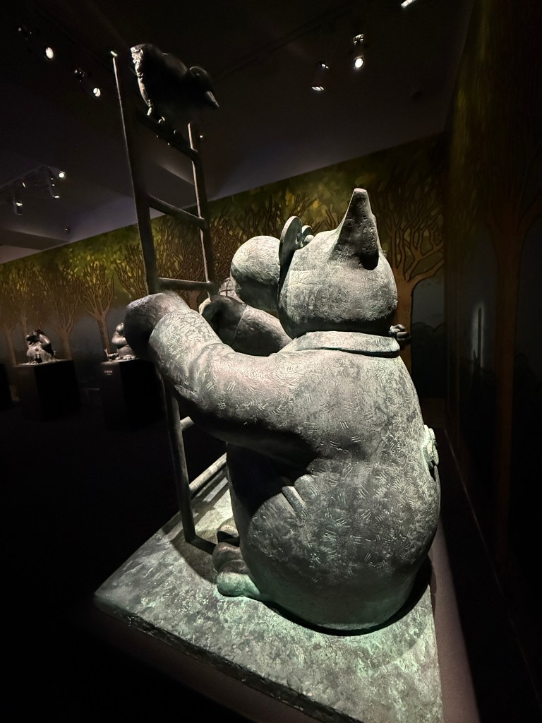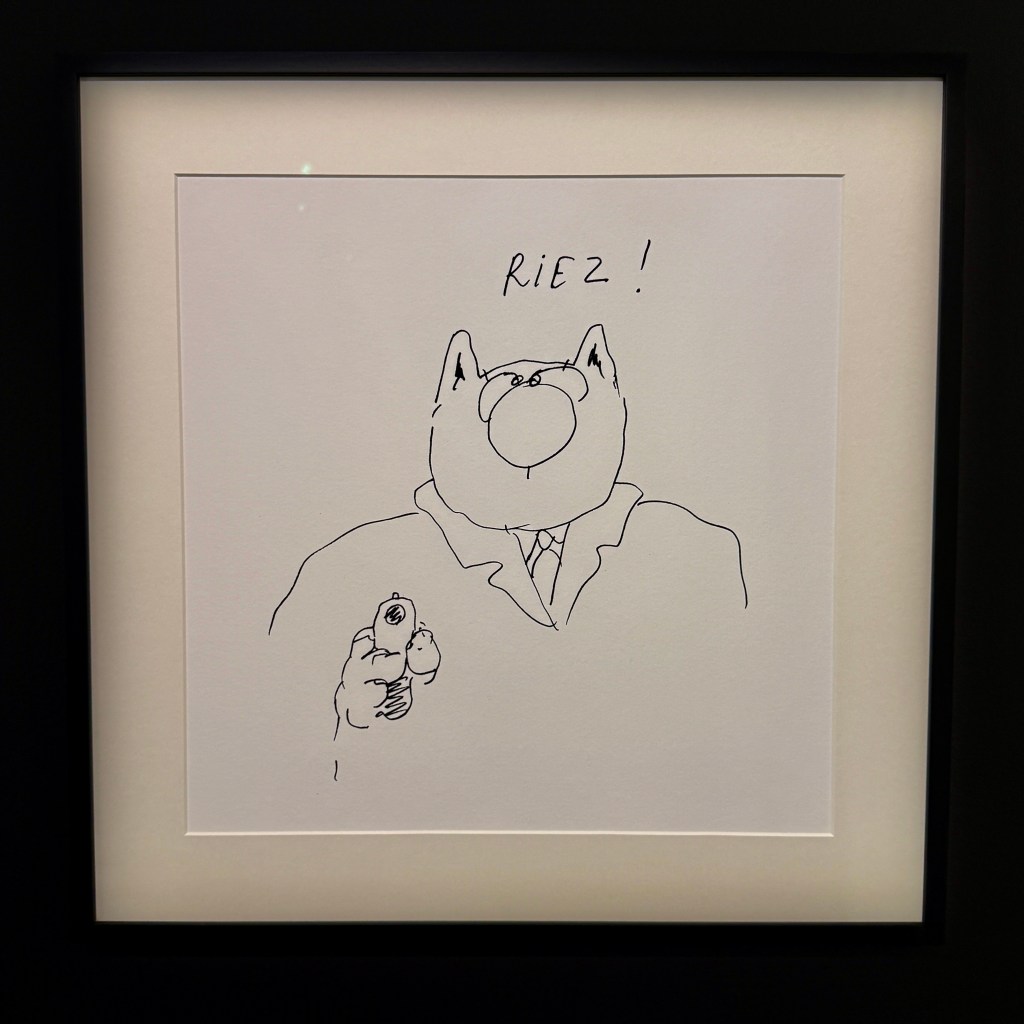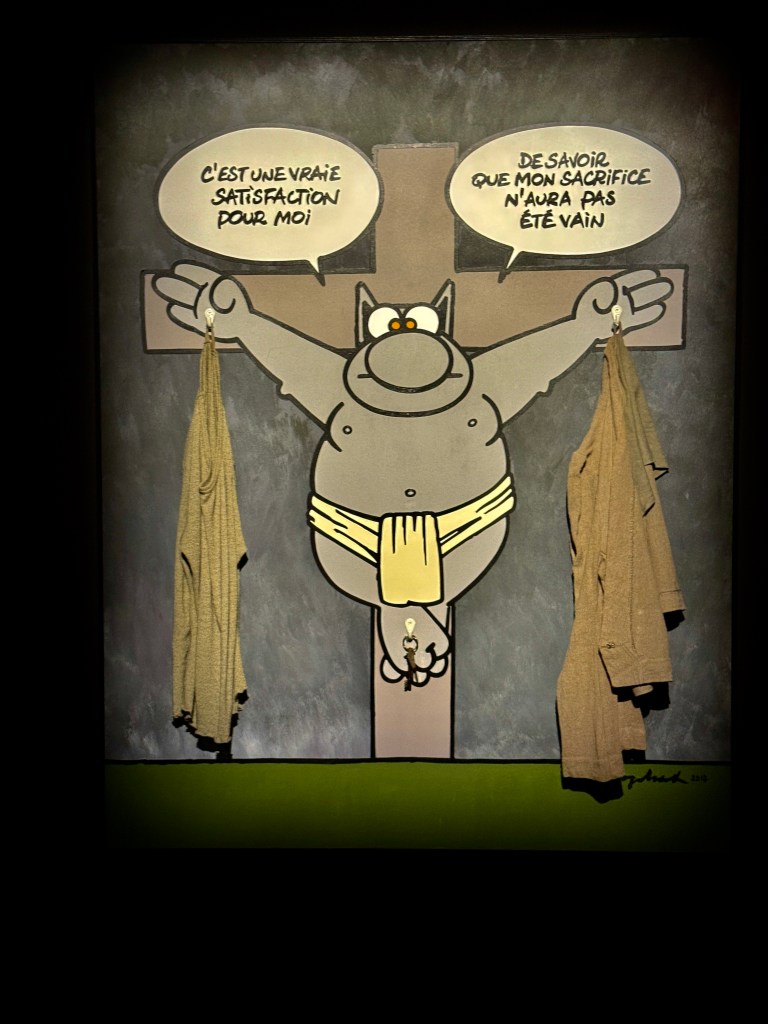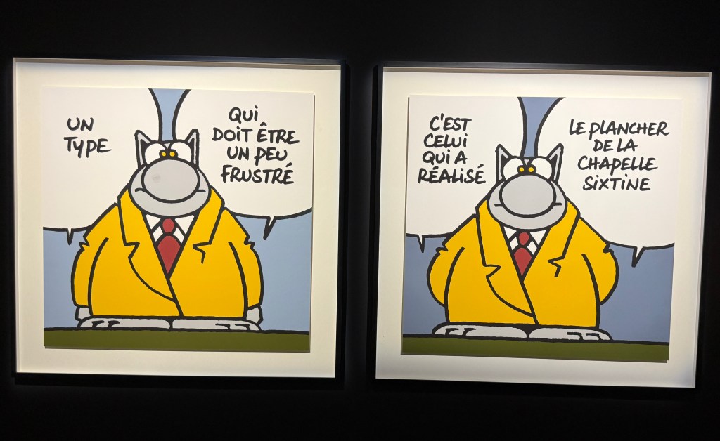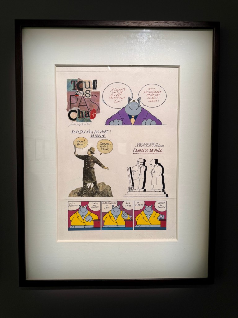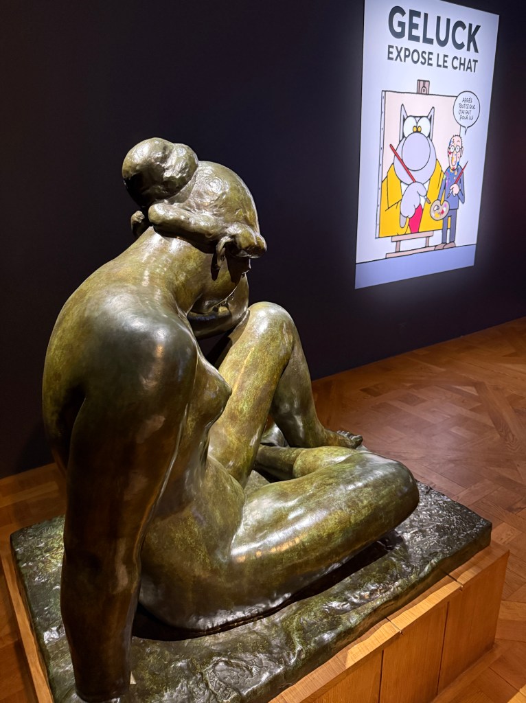 Cette rencontre a du sens car elle met en regard deux obsessions, l’une d’un académisme pompéien, l’autre d’une ironie bruxelloise. Et le Chat bouleverse l’espace, se joue de notre parcours, s’amuse à nous méta-diriger en commentant le parcours même qu’il nous propose. Et dans cette exposition, l’oeuvre de Bourdelle sert de contrepoint, nullement séparée, mais entrelacée, comme ça, l’air de rien. Elle donne un sens au reste du musée.