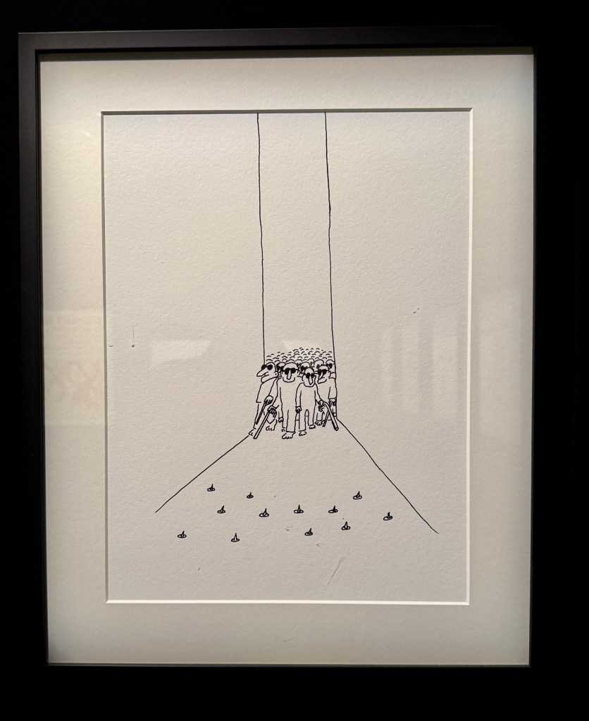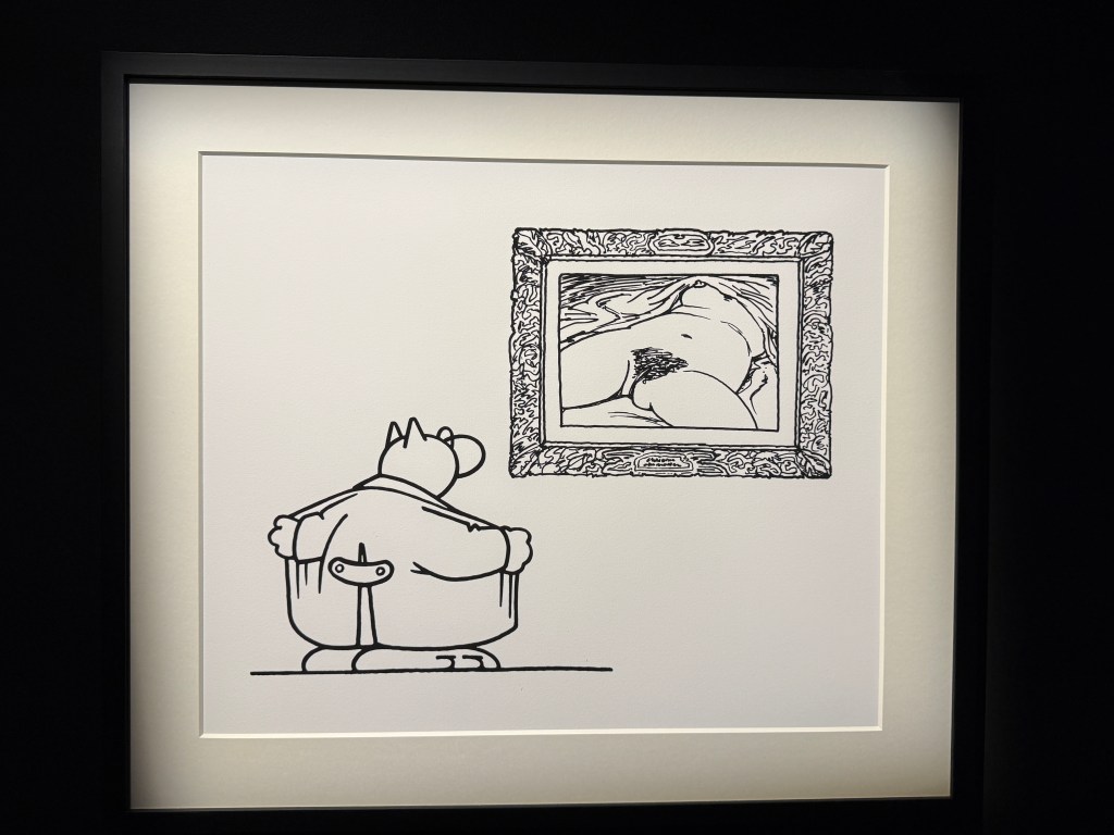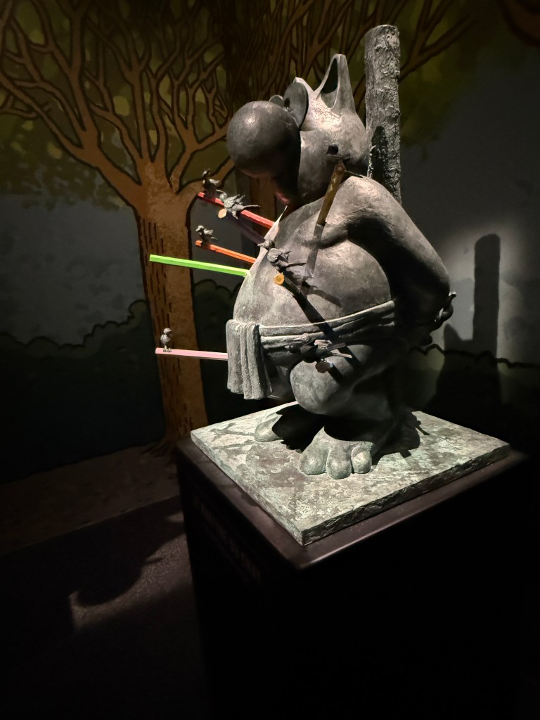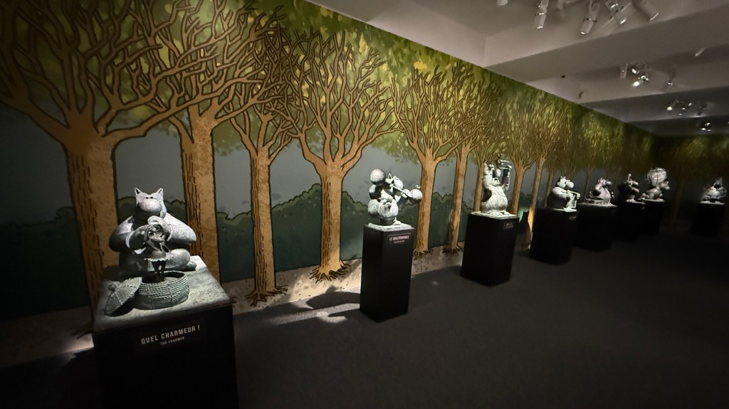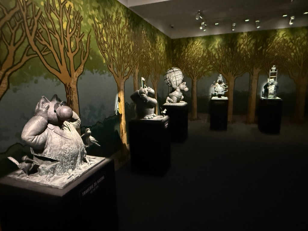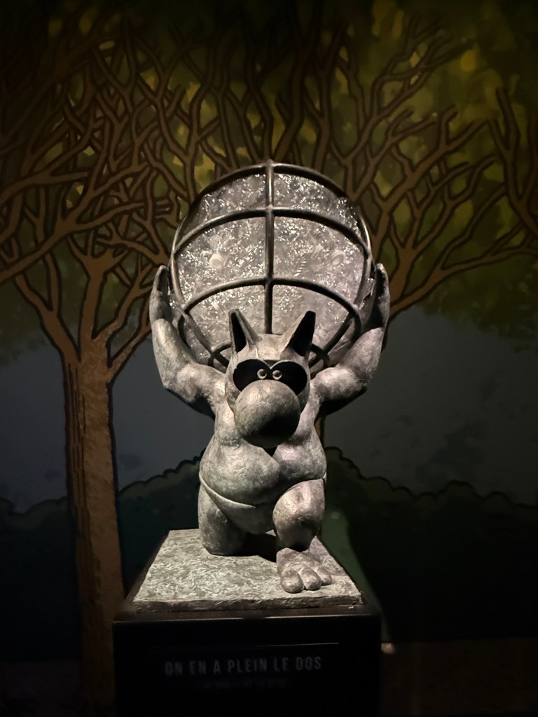 Cette rencontre a du sens car elle met en regard deux obsessions, l’une d’un académisme pompéien, l’autre d’une ironie bruxelloise. Et le Chat bouleverse l’espace, se joue de notre parcours, s’amuse à nous méta-diriger en commentant le parcours même qu’il nous propose. Et dans cette exposition, l’oeuvre de Bourdelle sert de contrepoint, nullement séparée, mais entrelacée, comme ça, l’air de rien. Elle donne un sens au reste du musée.
