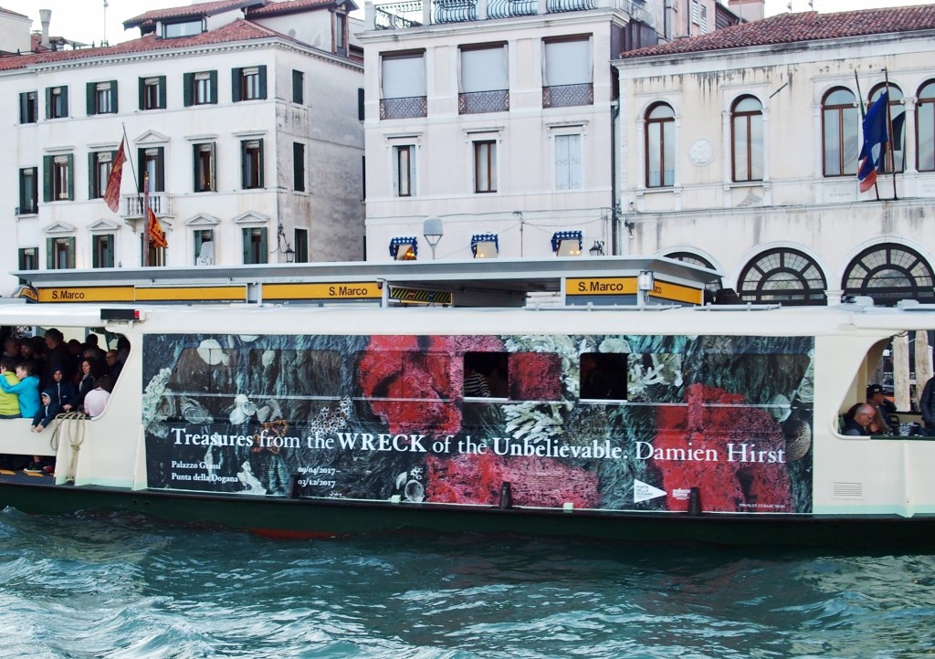 Pendant nos promenades, nous ne pouvions manquer de voir annoncé, sur le flanc des vaporetti, une mystérieuse exposition sur les trésors d’un naufrage …