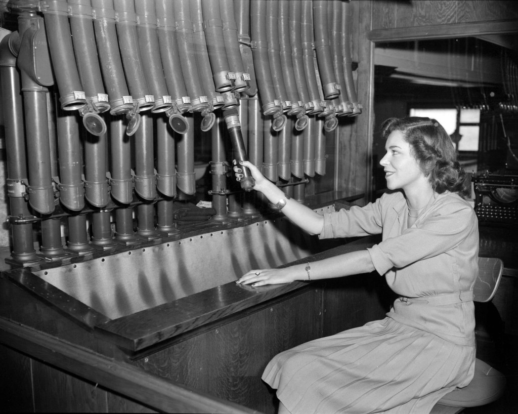Je vous parle d’un temps où l’on s’envoyait des « pneus », c’est-à-dire des messages écris sur de papier pelure et enfermés dans des conteneurs cylindriques qui partaient dans des tuyaux à air comprimé à travers Paris. Les ancêtres du SMS.