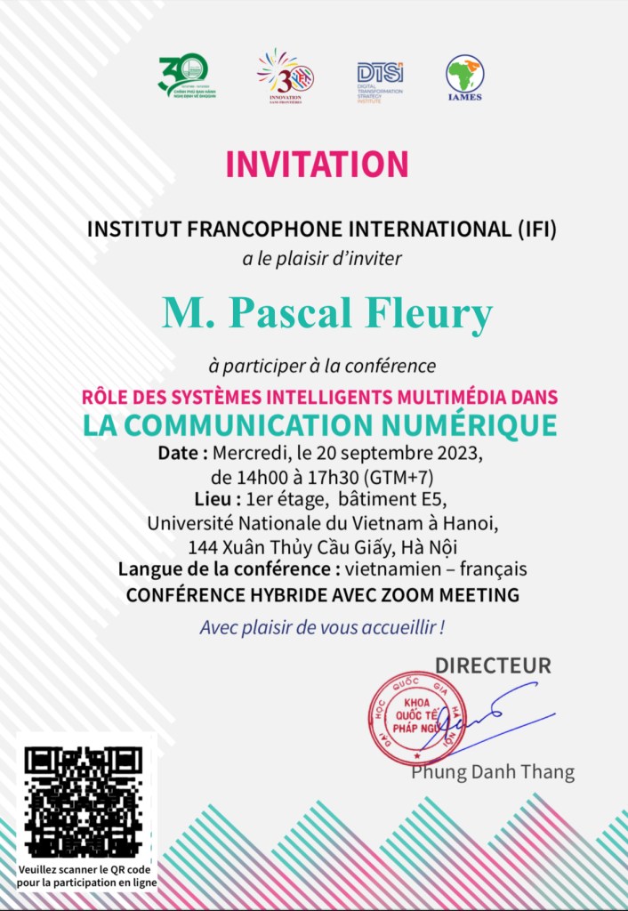 Et voilà t’y pas que l’Institut Francophone International (IFI) de l’Université Nationale du Vietnam à Hanoï (UNVH) m’invite à participer à une conférence internationale sur ce même thème…