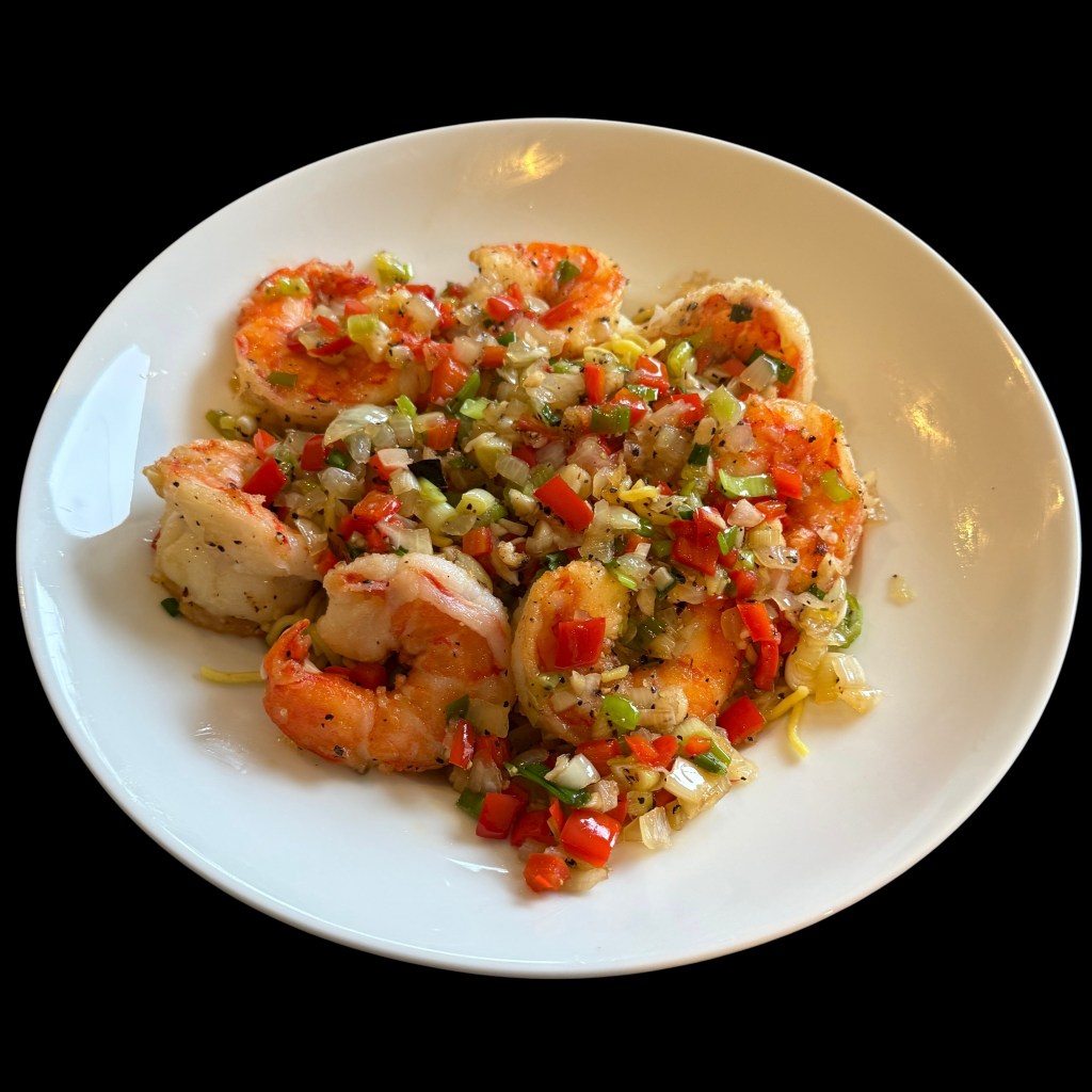 Ceux qui lisent attentivement mes recettes savent pertinemment que j’ai réalisé, avant-hier, ma recette des grosses crevettes au sel et poivre. Ils sont forcément deviné et inféré qu’il allait me rester quelques unes de ces magnifiques crevettes crues que je ne laisserais pas dépérir au fond de mon frigo.