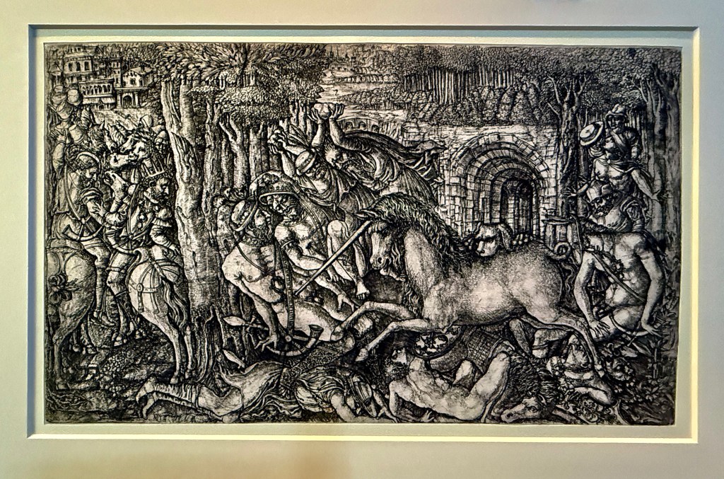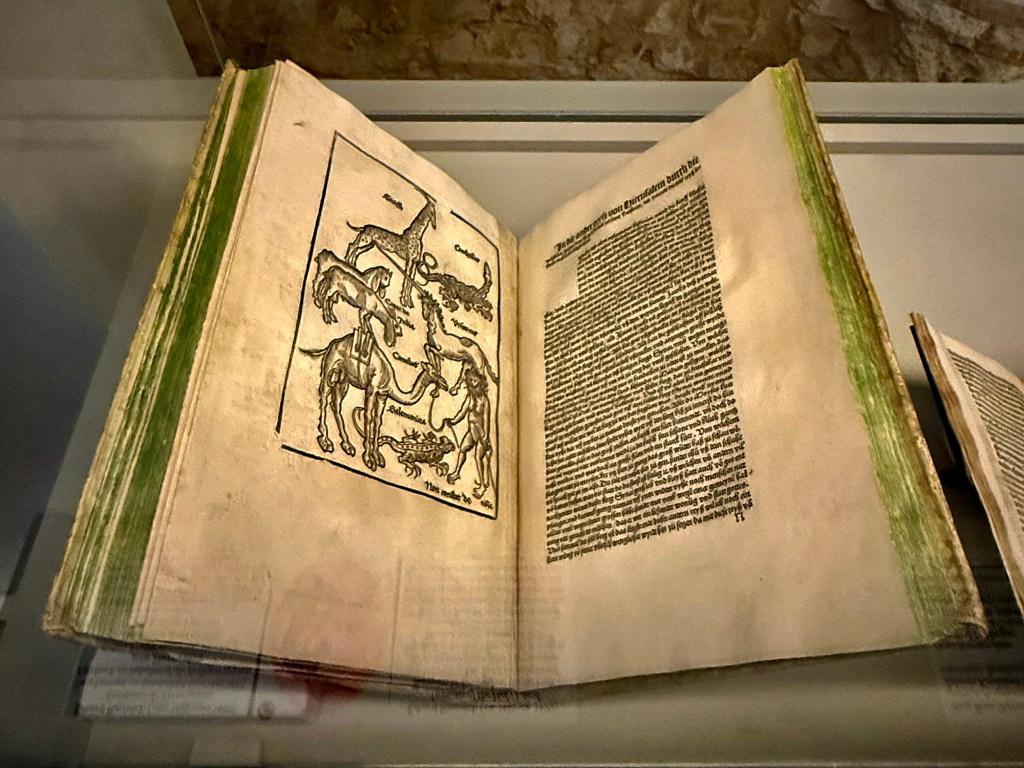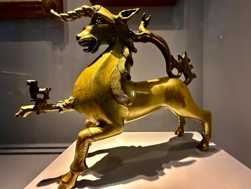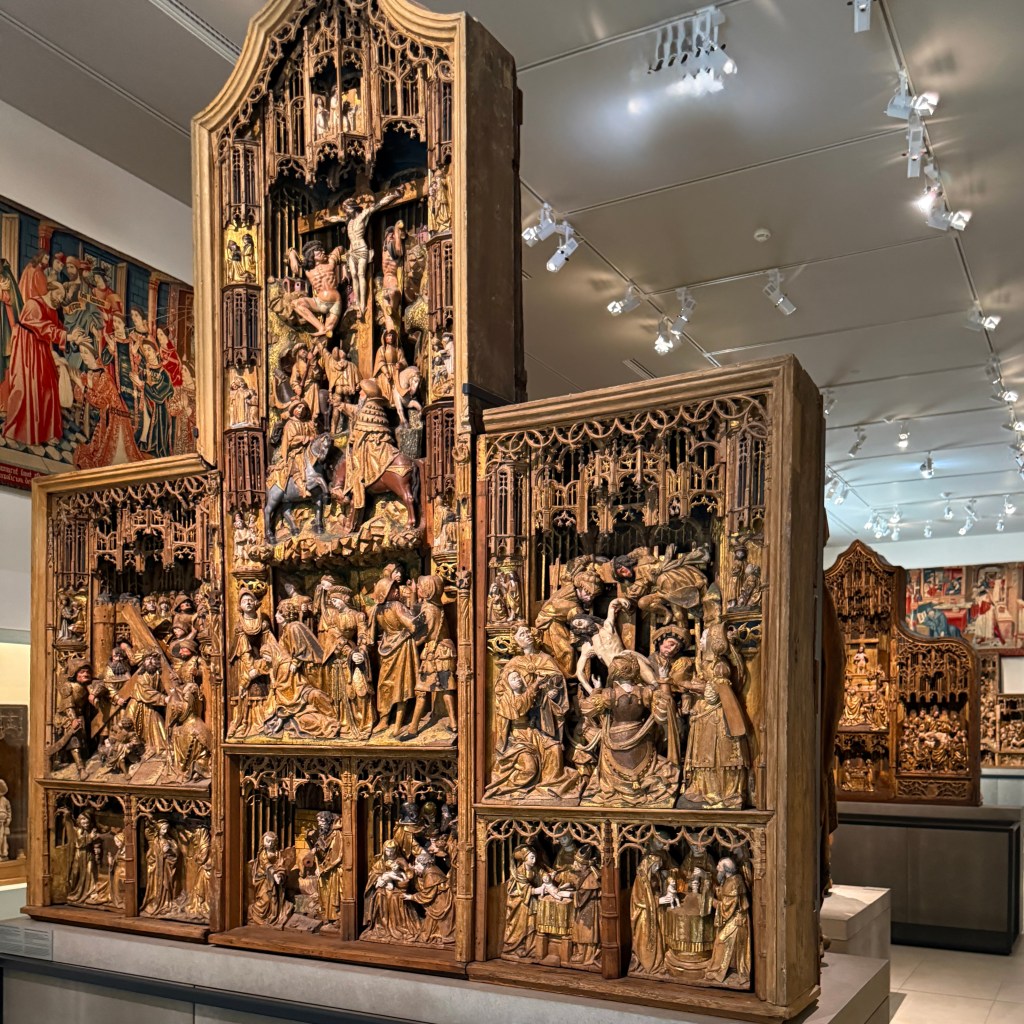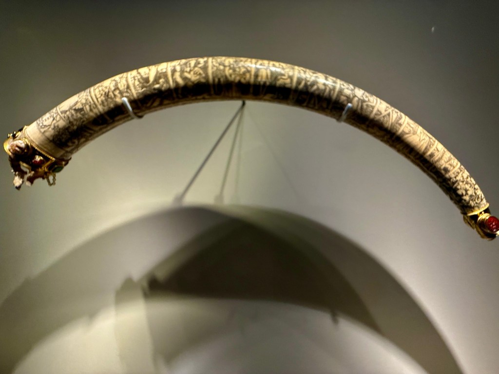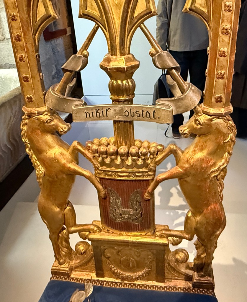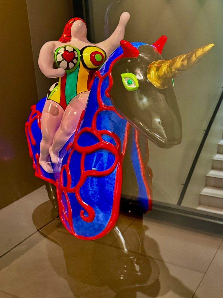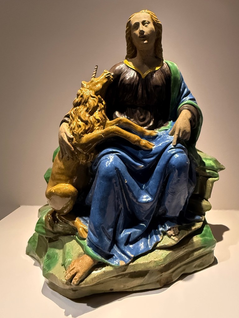 L’exposition sur les Licornes tien en quelques salles et n’est que l’ombre de celle qui a eu lieu en Allemagne. On y apprend que la Licorne est un symbole de pureté, qu’elle est à la fois une métaphore de Jésus et un symbole de courage. On y apprend que si on n’en trouve guère, c’est qu’elles n’on pas pu monter sur l’Arche de Noé. On y voit la canne de Talleyrand, faite d’une dent de narval. On voit qu’elle est universelle et hésite entre être parente de la chèvre ou du cheval.