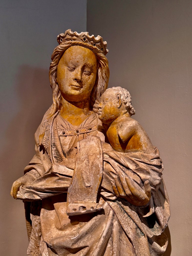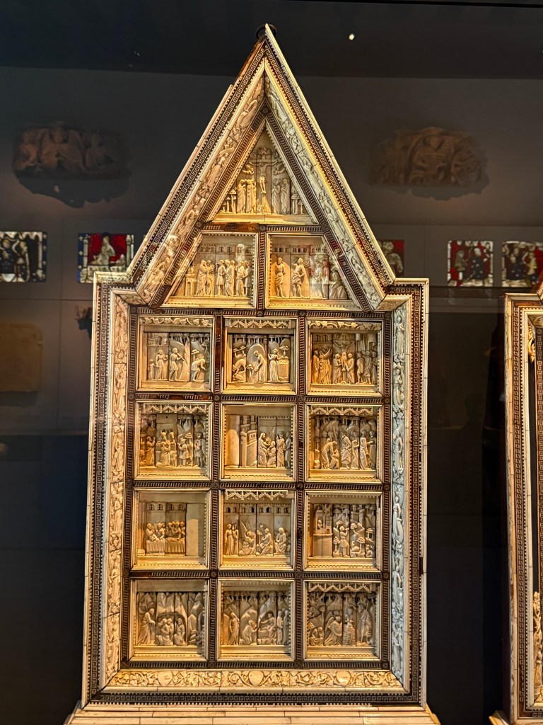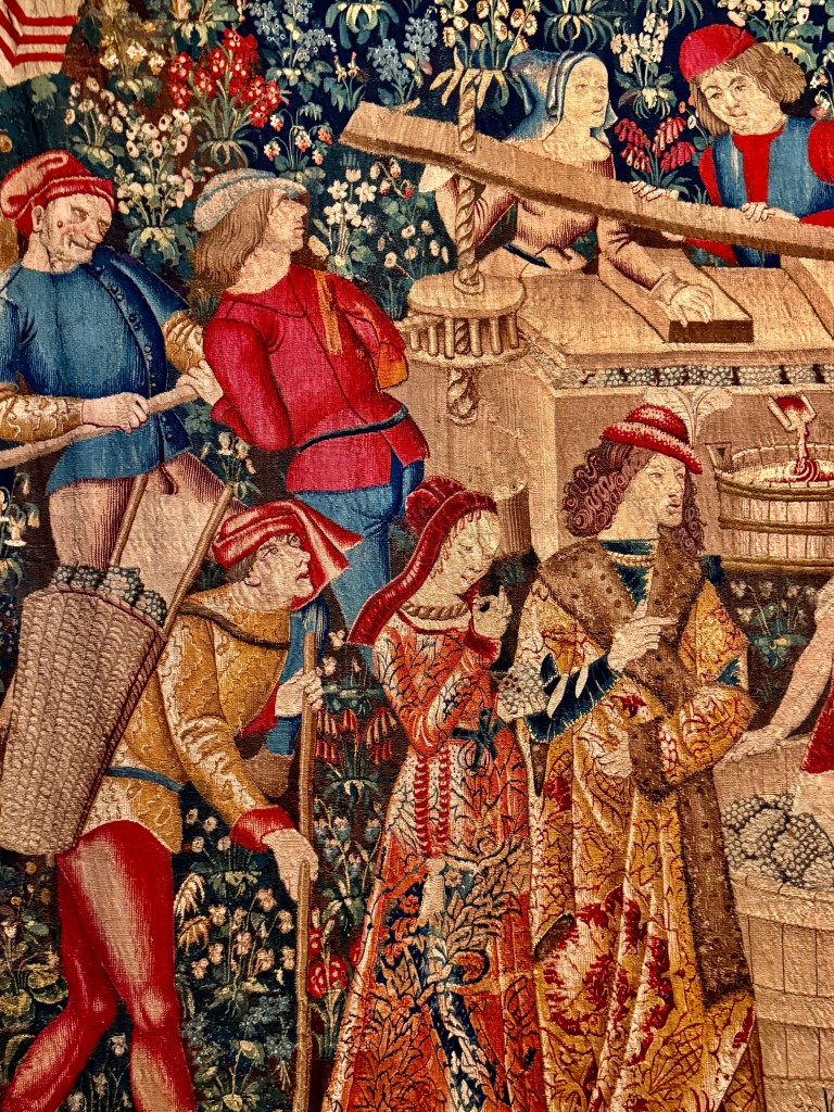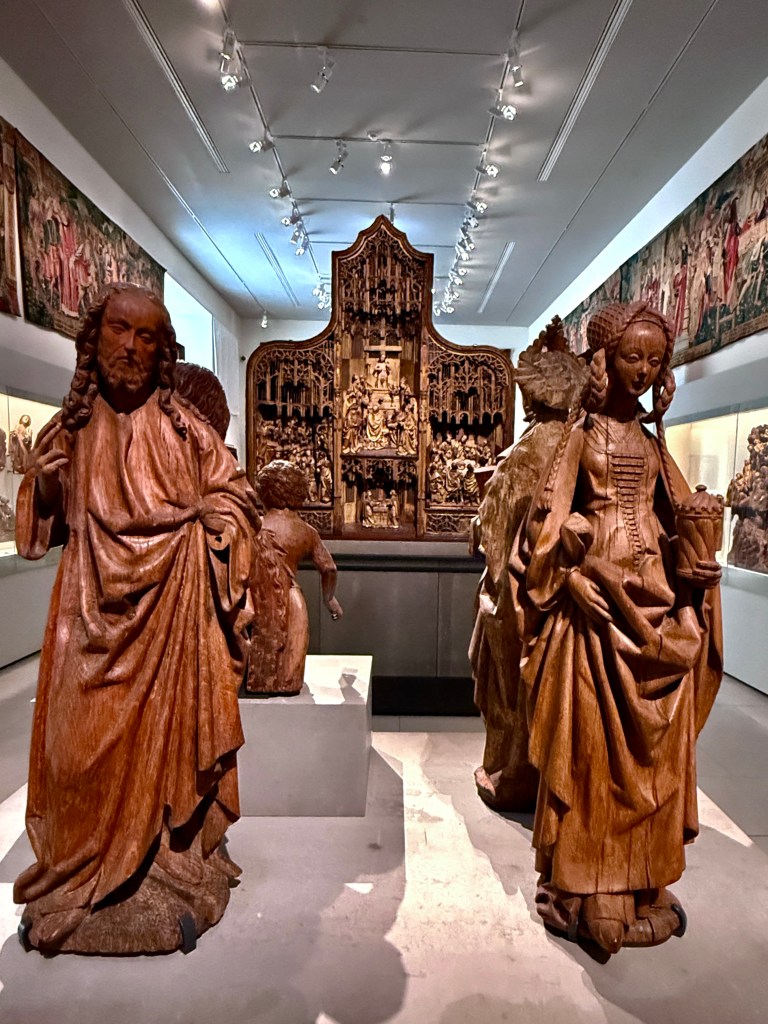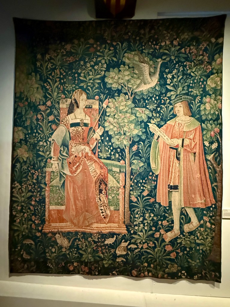 Puis on visite la salle des tapisseries de la Dame à la Licorne. La véritable raison de visiter ce musée. Elles sont maintenues dans une semi obscurité car le rouge est une couleur fragile et qu’elles ont nettement pâli depuis l’âge où elles furent tissées.