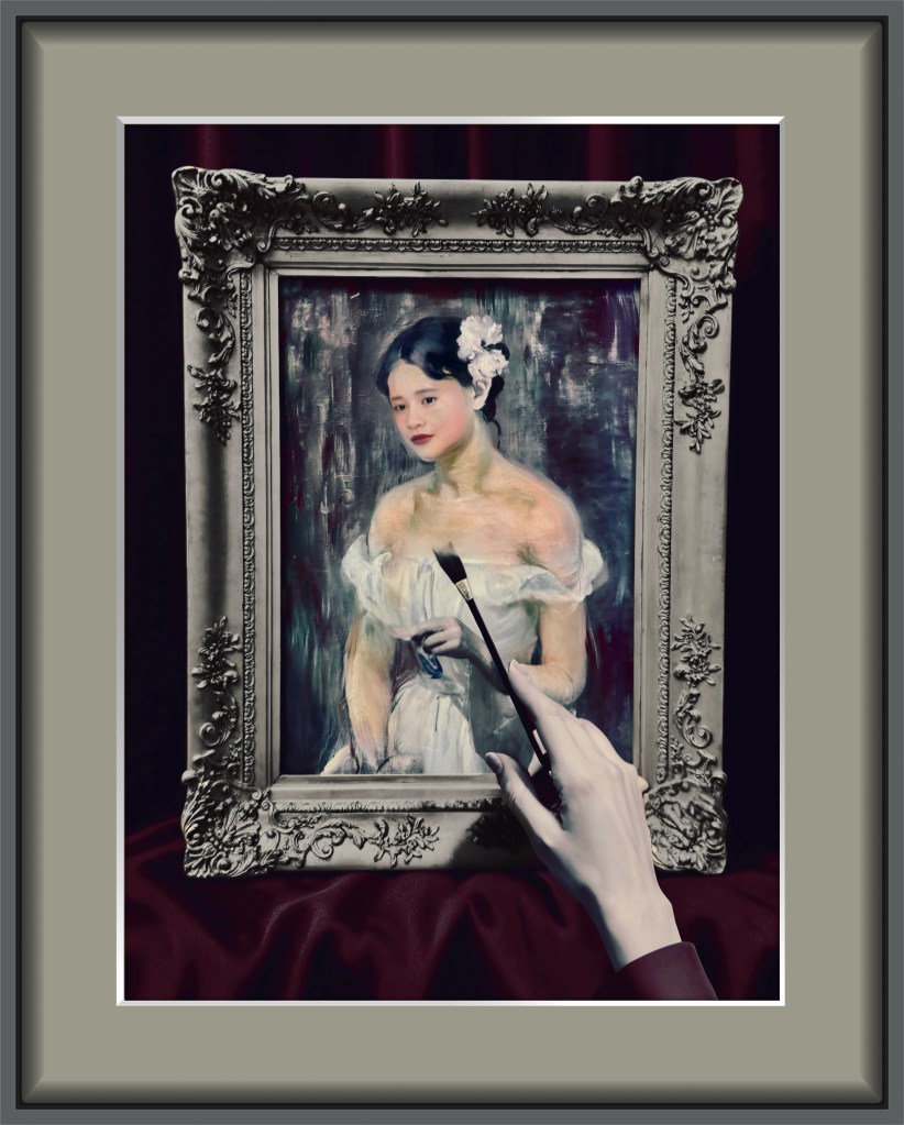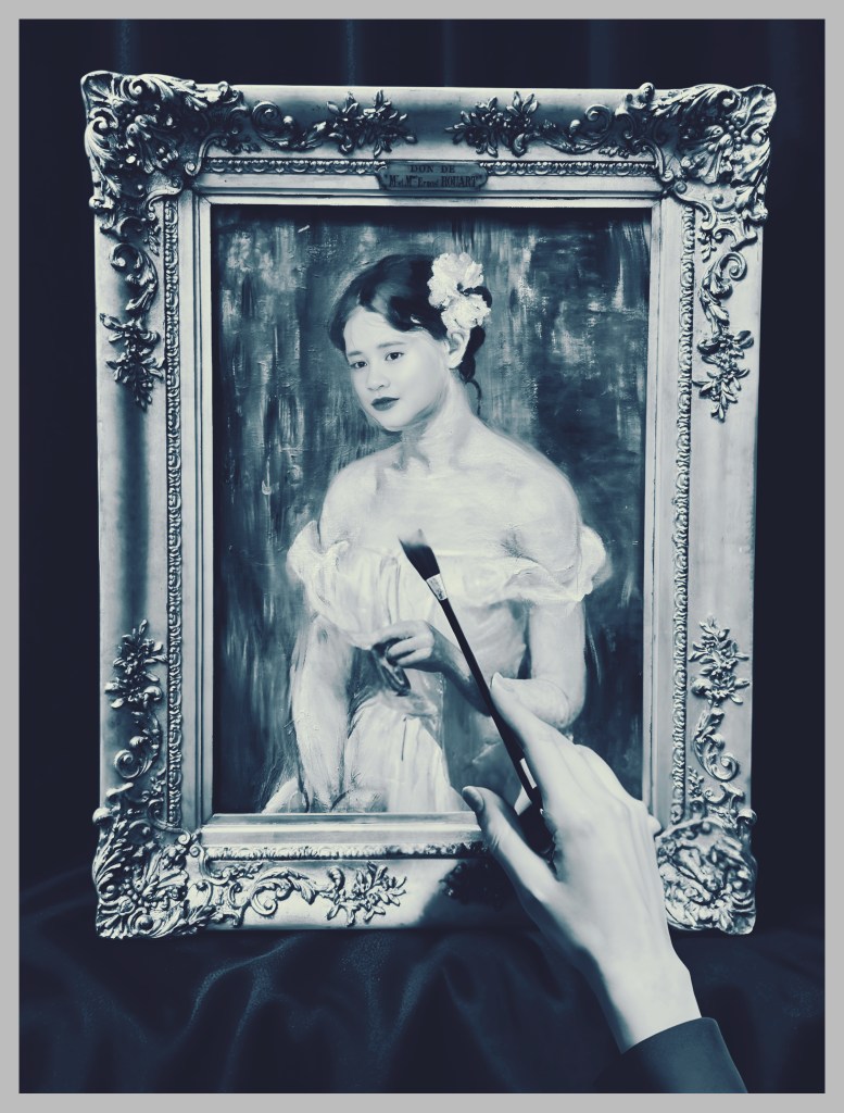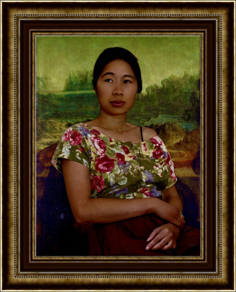 À partir des éléments que vous me fournissez, je transforme n’importe quel oeuvre d’art en y intégrant votre portrait de telle sorte qu’il semble en faire partie dès sa création.