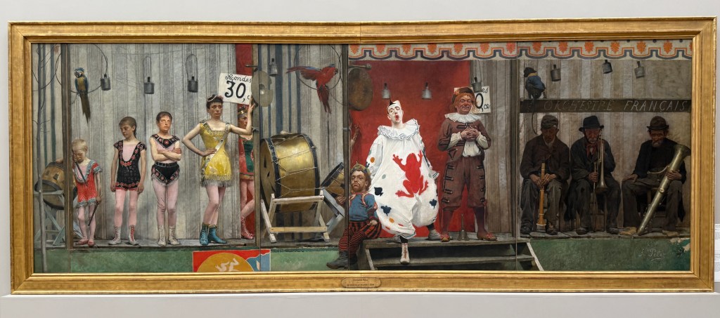 Puis on découvre que la seconde moitié du XIXème siècle n’a pas été l’empire du seul impressionnisme. On découvre du réalisme, de la peinture symboliste, coloniale, héroïque, de la caricature, des pastiches historiques, des oeuvres d’une diversité étonnante.