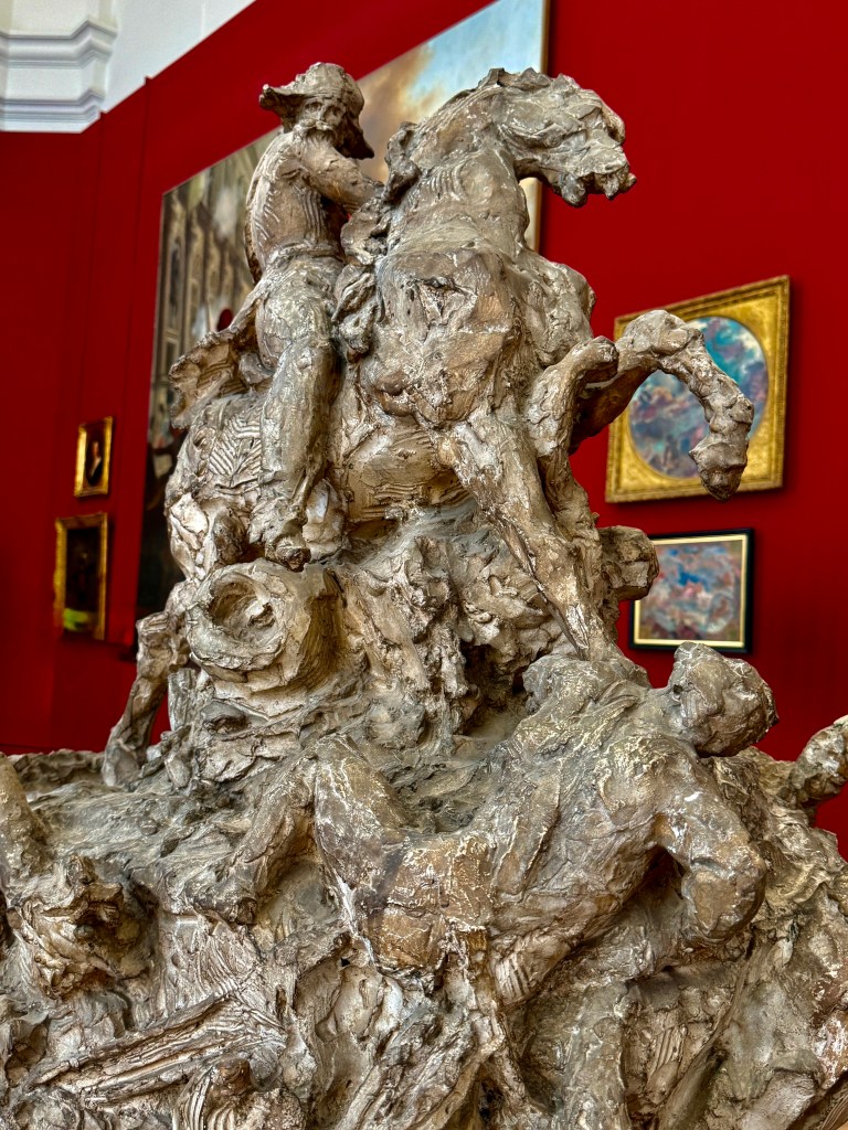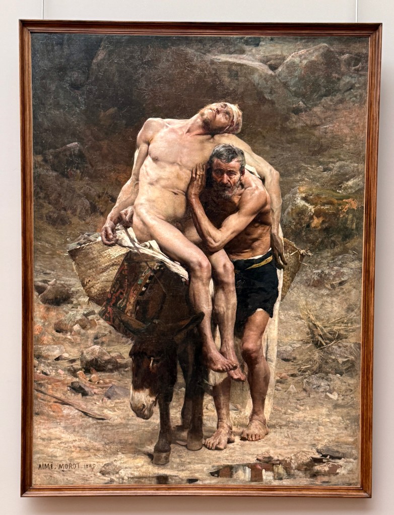 Une fois dedans, l’exposition permanente est faite d’un vaste ensemble de peintures et de sculptures de la fin du XIXème siècle, souvent des faux et des moulages, mais terriblement impressionnants par leur expressionnisme tout à fait en opposition avec l’impressionnisme. J’ai toujours aimé le kitsch quand il se référait à Huysmans. Et là, je suis servi.