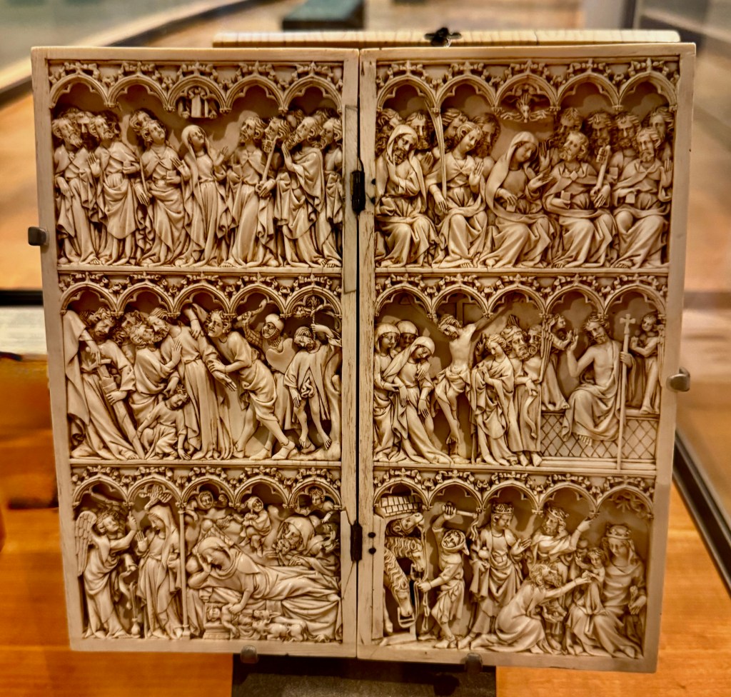 Aujourd’hui, par une lumineuse journée de février, j’y suis retourné pour découvrir à nouveau cette incroyable collection d’oeuvres médiévales mises en scène avec beaucoup de talent, en échangeant avec le monde extérieur des contrastes saisissants. Ce palais tout de pierre révèle, quand on est dedans, de vastes ouvertures qui renforcent la solennités des pièces massives qui y sont exposées. Puis dans un dédale de corridors étroits, on s’aventure dans la pénombre dans des chapelles étroites et ornées de peintures pieuses. Une fois de plus, on se prend à voyager.