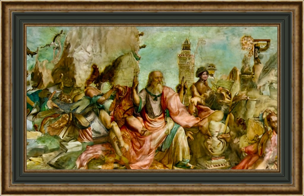 Pour illustrer mon propos, je publierai ici, comme elles viennent, les images de ma réalité transformée par l’I.A. Précédemment, dans MUSEUM et LA PHOTO ET L’IMAGE, je tentais de faire la distinction entre les photos trans formées avec l’I.A et celles où je n’y avais pas recouru. Cette distinction n’a plus de sens puisque l’I.A. est partout. Tout ce que je promets, c’est de ne pas faire prendre les vessies pour des lanternes.