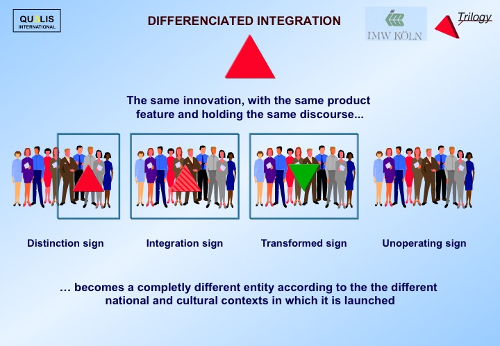 Thus if the hierarchy of values and codes can vary so easily between Oslo and Lisbon, or Strasbourg and Marseilles, it in no way prevents us from accepting the same product or communication proposal in either place. But it is vital to master these values, codes and their evolution perfectly to be able to function in this dimension.