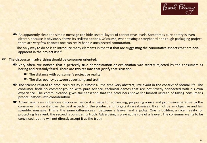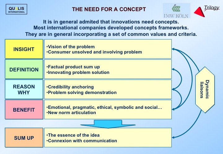 Market studies outline usage and attitudes, pinpoint acceptation and adhesion. The links create a consensus which is supposed to define the global message.