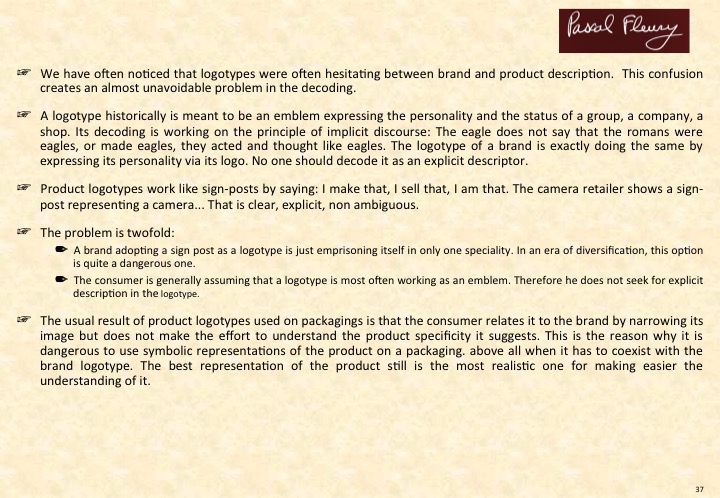Let us take an example. Imagine that only the colour blue and the ida of freshness remain for a dairy product. We can hardly go overboard at this idea. But in fact if we dig just a little deeper we will see that blue, freshness and their correlations have nothing like the same resonance for a Greek or a Dane.