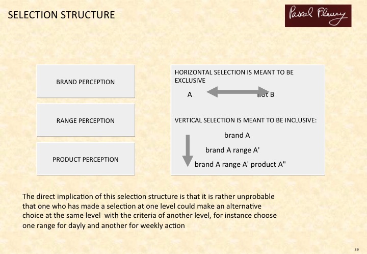 These grids allow for easy downward identification because ‘having’ is easier to identify than ‘being’. But in an upward direction they are practically unmanageable because they have to account for the variants and atypical deviations of taste and chance.