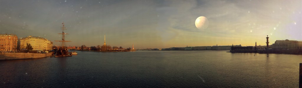 La ville devient un jeu de pénombres aux tons bistre, ocre, adoucissant le relief des bâtiments. La profondeur de l’obscurité donne à l’architecture des airs de fresque.