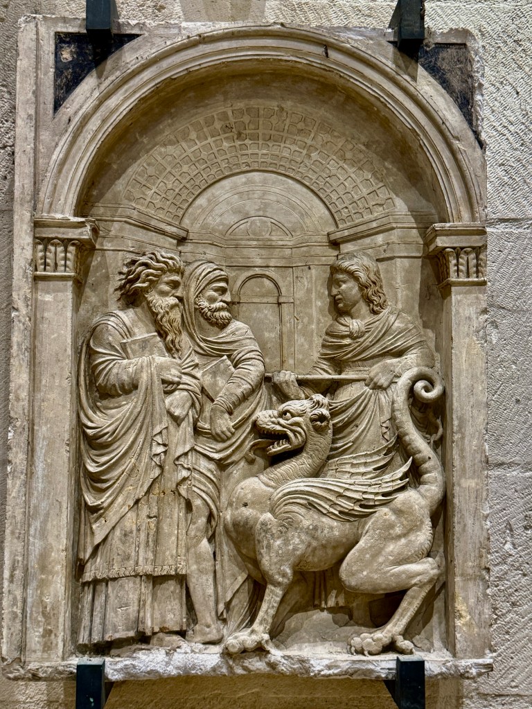 A Rome, point de roman, point de gothique, l’art antique des basiliques vient télescoper l’art moderne de la Renaissance. Ce qui donne aux églises cet aspect caractéristique d’un long bâtiment de brique (antique), au toit en V (antique), au décor de marbre (moderne) et à la façade de marbre (moderne).