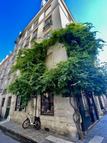 Il ne reste plus qu’à passer le petit pont qui mène à l’îles Saint Louis que transperce une rue toute droite croisée de quelques autres, perpendiculaires et charmantes. Curieusement, l’édile de Paris n’a pas encore jugé bon de rendre cette rue piétonnière, mais sa folie est une énigme sans fond ni fondement.