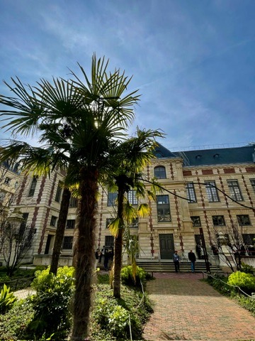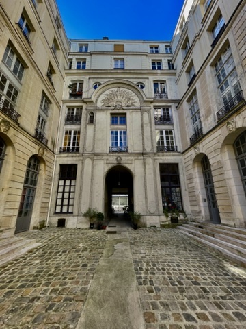 Autre aspect surprenant et sympathique, la cour intérieure datant de Richelieu et plantée de palmiers et de plantes exotiques. Un lieu qui fait rêver dans ce quartier un rien austère aux bâtiments massifs.