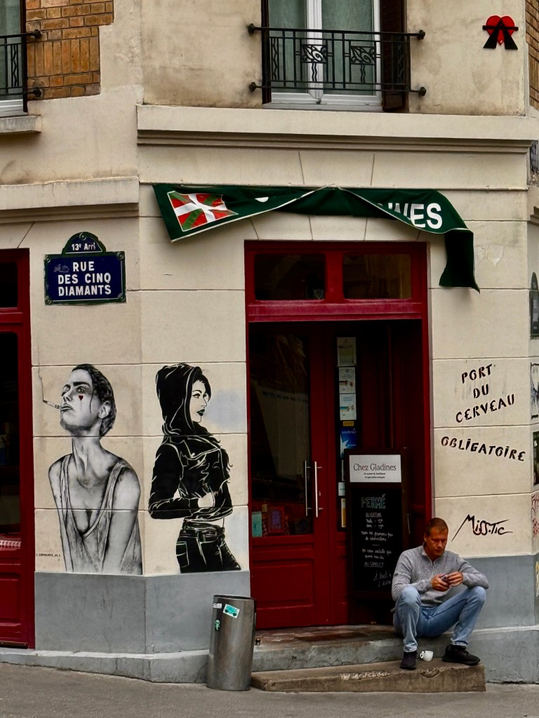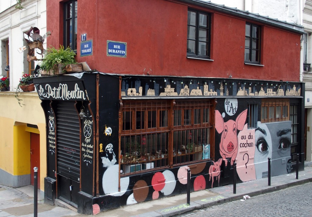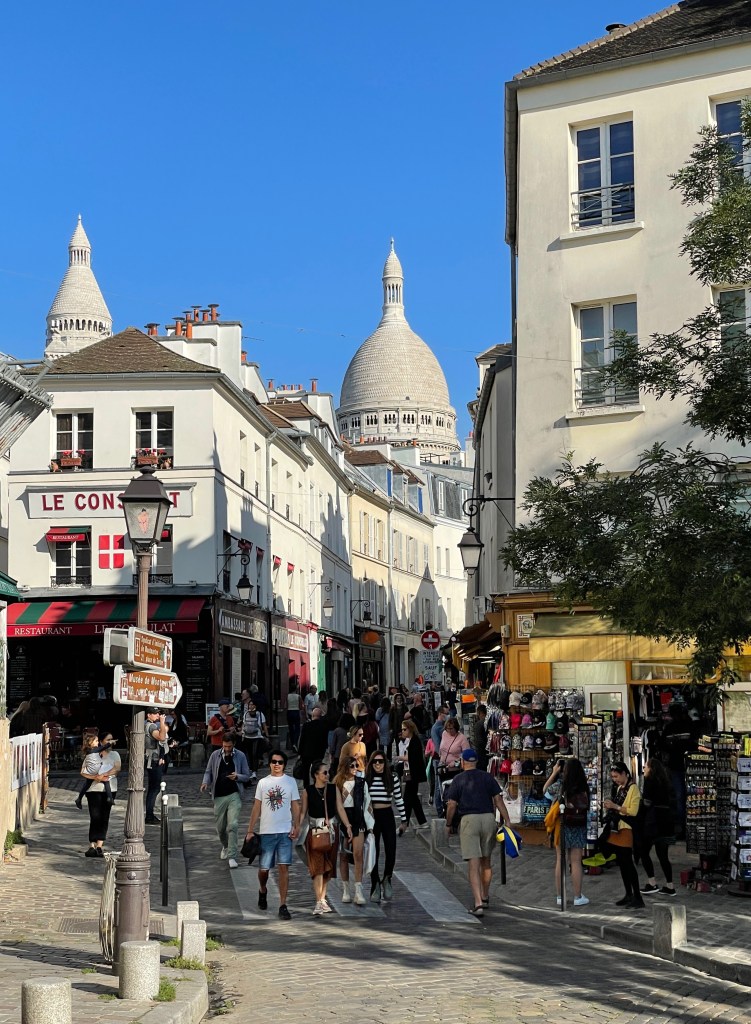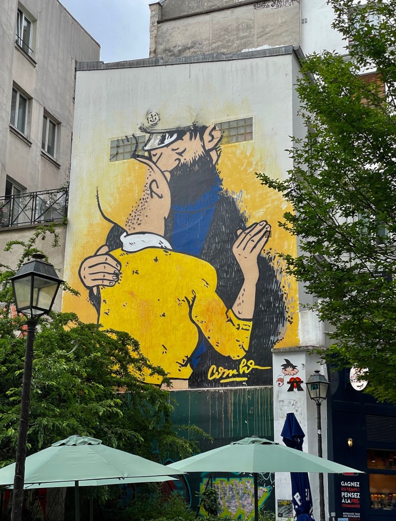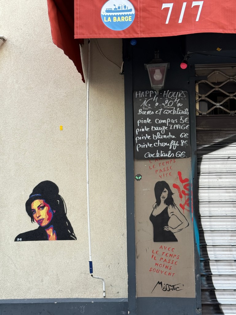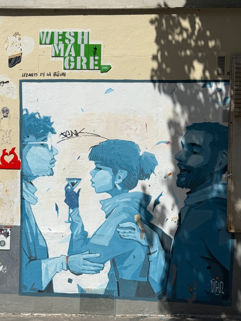 Nous mettons le cap sur les Abbesses et les mille rues coupées d’escaliers de la Butte. Contrairement au Quartier Latin complètement dévoyé, Montmartre a survécu aux assauts d’Hidalgo et, dans ses parties basses, garde une grande partie du caractère chaleureux, un peu gribouille qui avait fait mon bonheur quand, étudiant, j’y habitais, il y a un demi-siècle. On s’y sent bien et même la daube touristique garde du charme.
