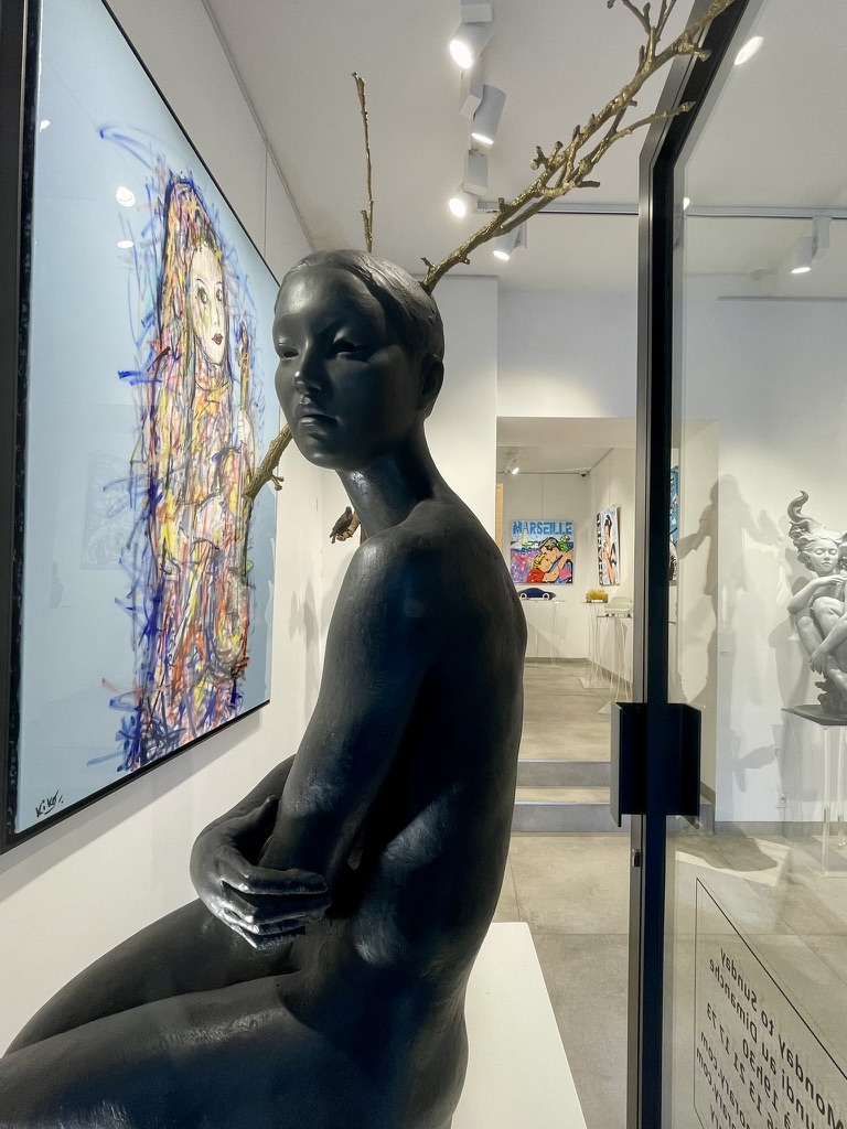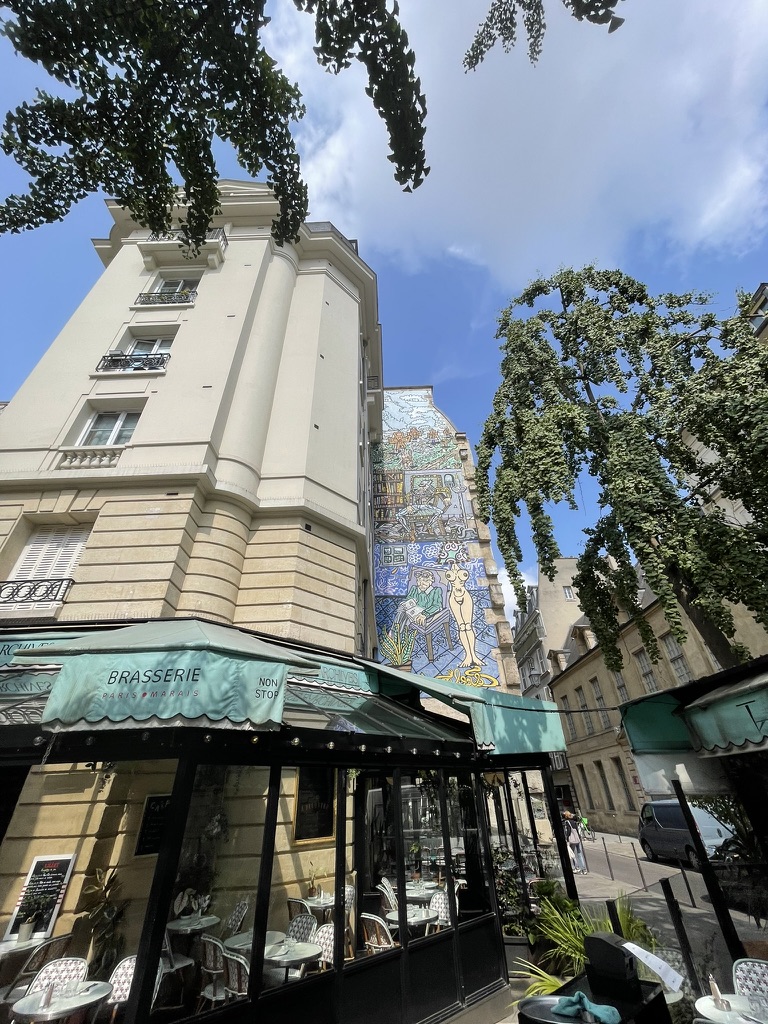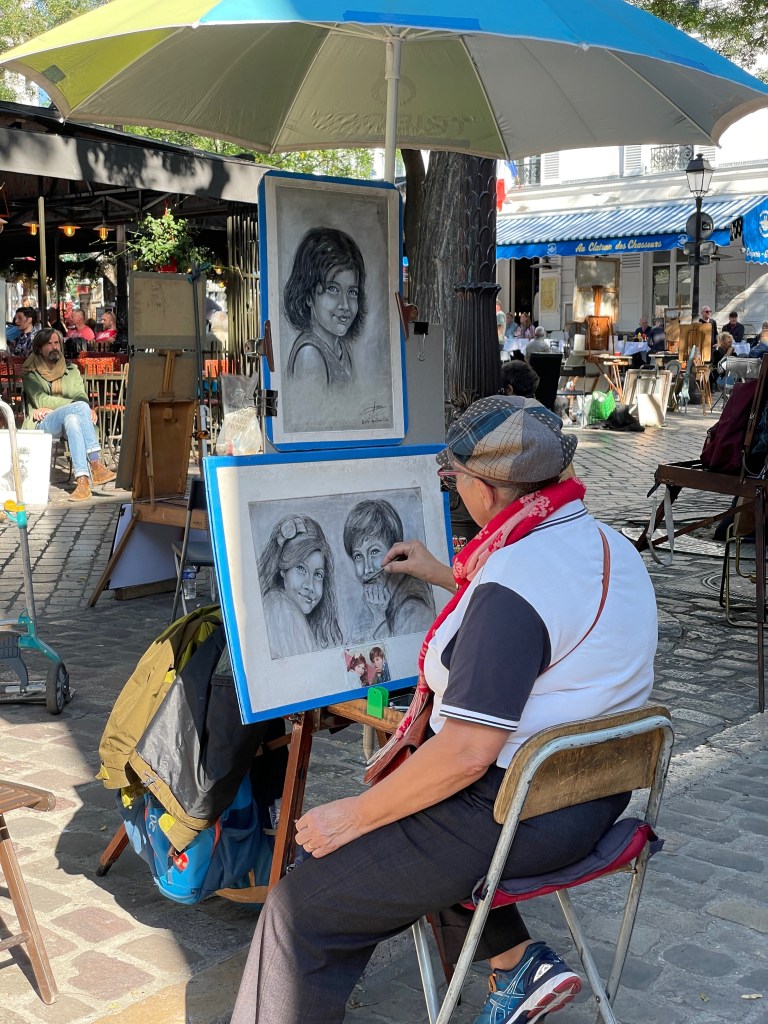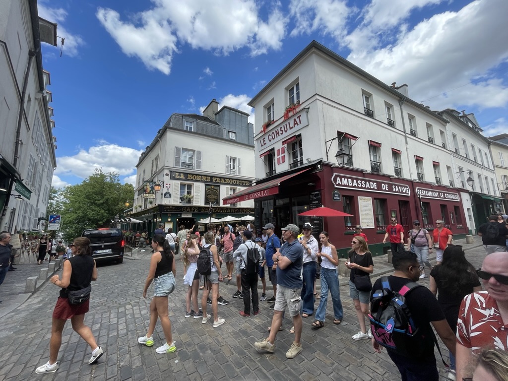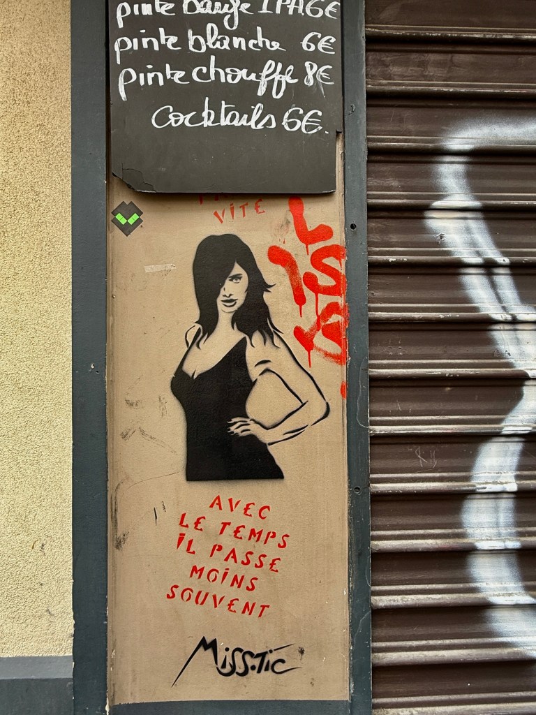 Nous mettons le cap sur les Abbesses et les mille rues coupées d’escaliers de la Butte. Contrairement au Quartier Latin complètement dévoyé, Montmartre a survécu aux assauts d’Hidalgo et, dans ses parties basses, garde une grande partie du caractère chaleureux, un peu gribouille qui avait fait mon bonheur quand, étudiant, j’y habitais, il y a un demi-siècle. On s’y sent bien et même la daube touristique garde du charme.
