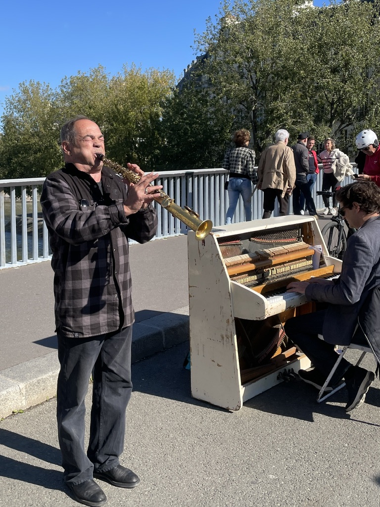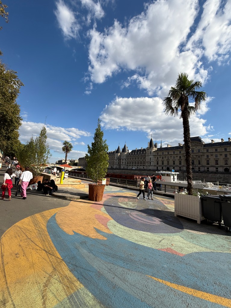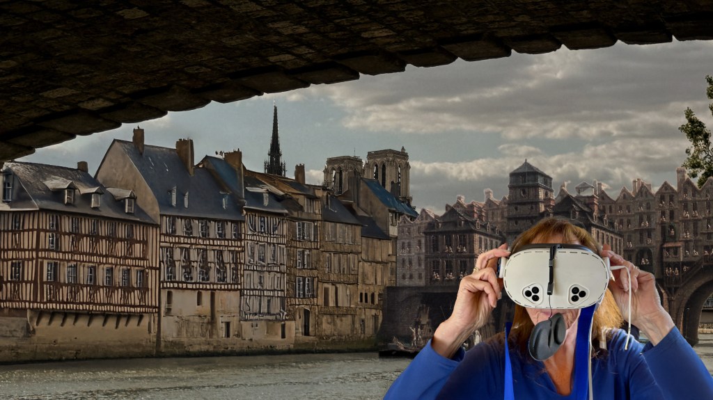Emilie a eu le trait de génie de nous offrir une visite virtuelle de Paris avec masques V.R. sur le nez. Une expérience qui confronte, in situ, le réel à sa réinvention. Mais pour y aller et en revenir, nous avons décidé de nous promener un peu, tant sur les Champs Élysées (devenus une banlieue de Dubaï) que dans le Marais où, d’une manière ps virtuelle du tout, subsistent des vestiges médiévaux peu connus. Et puis il y avait Paris Plage, lui-même, qui a transformé les quais de la Seine, autrefois sillonnés par les autos de la voie express, en une kermesse jalonnée de palmiers qui font un ménage étrange avec les monuments historiques. Et je me dis qu’il faut bien toute une vie pour connaître Paris.