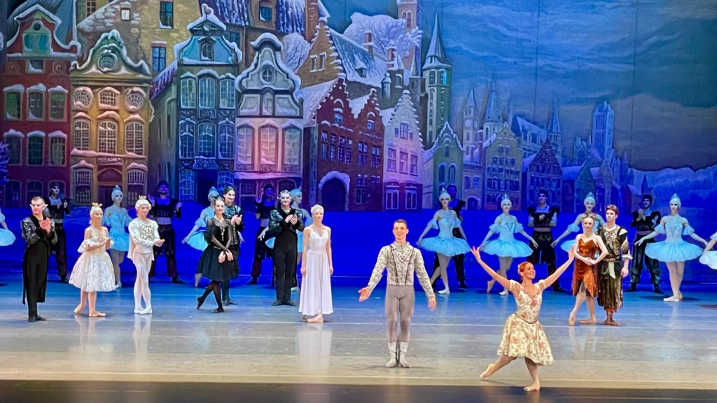 Jackie avait décidé de m’emmener voir La Reine des Neige, un ballet dansé par une troupe ukrainienne. C’était aussi un prétexte pour voir l’avenue Montaigne décorée pour Noël. Le spectacle s’avéra d’un académisme digne de la troisième République, fait de pointes et d’exercices de gymnastique dans des décors au kitsch très abouti. Mais à la toute fin, après les applaudissements, la troupe montra le drapeau ukrainien et devant une salle debout, entonna l’hymne ukrainien dans une émotion intense. Rien que pour cela, la journée était sauvée.