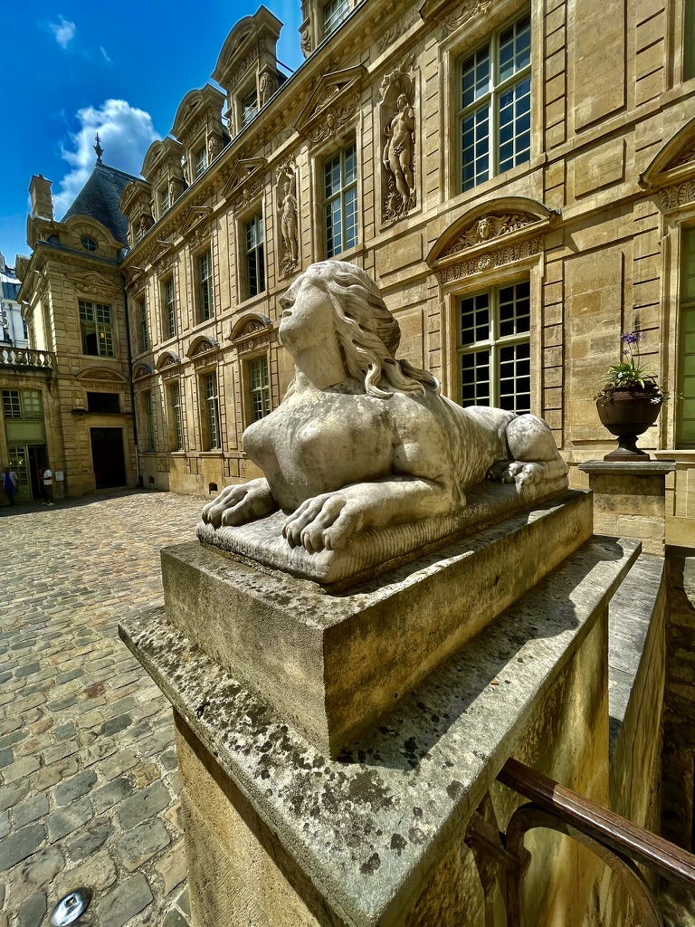 Mais, les rues étroites du Marais étaient parfaitment libres d’accès, envahies de touristes curieux et décontractés. Beaucoiup des plus beaux hôtels du Marais étaient ouverts et offraient des écrins somptueux pour des expositions diverses eet attrayantes. Nous avons caboté de prote cochère en porte cochère pour decouvrir les façades grandioses de ce quartier de plus en plus magnifique.