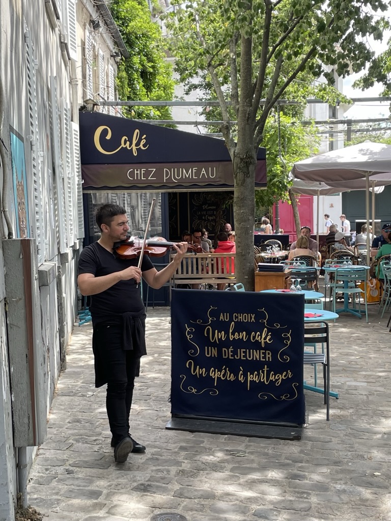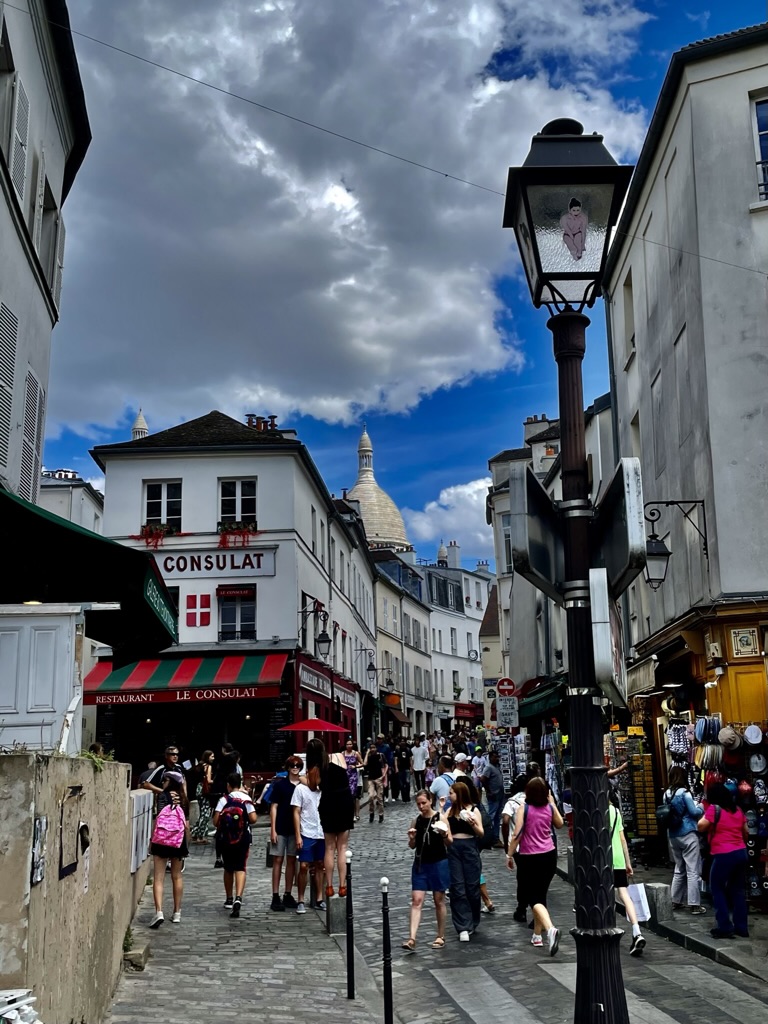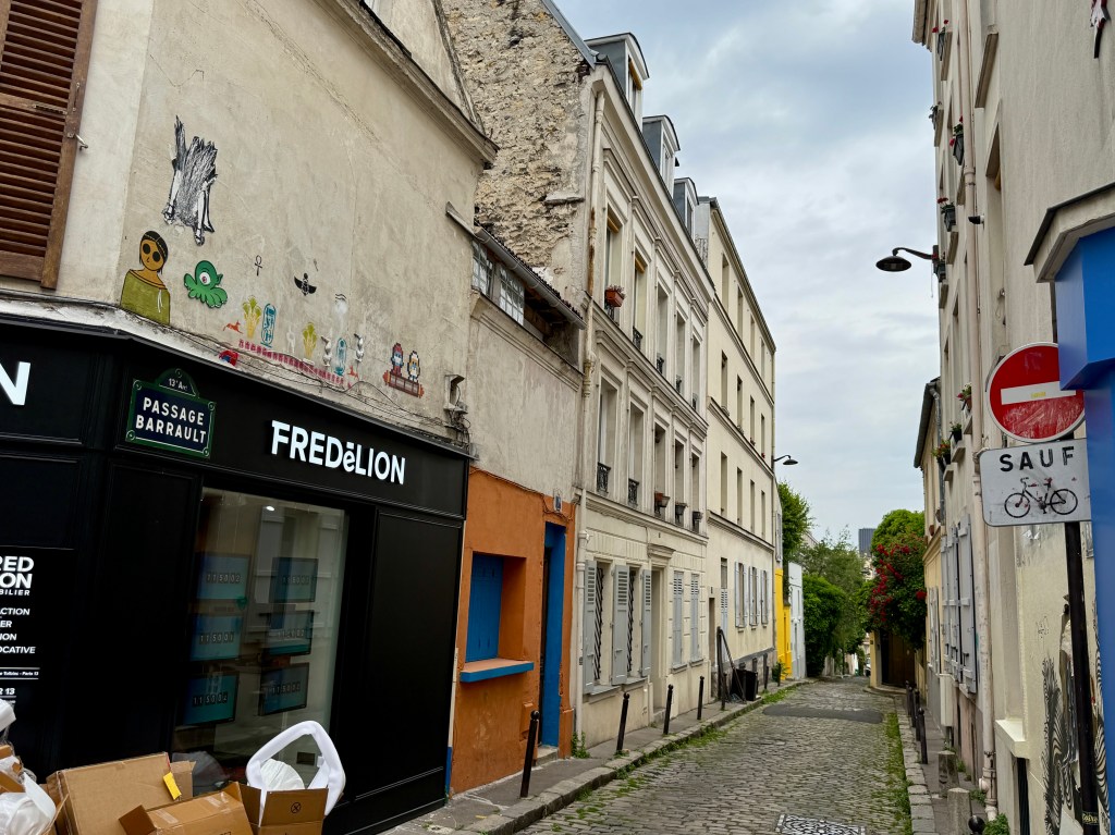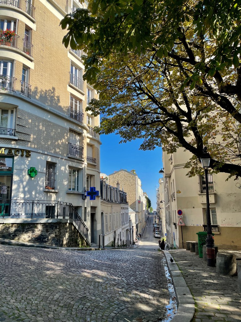 Vivre dans cette rue, c’est être au musée, se regarder dans un Paris vu par les cinéastes en quête de couleur locale. Le sentiment qui en ressort est bizarre. À force de se vouloir authentique, l’endroit sonne un peu faux pas tout à fait habitable. Ce n’est pas désagréable, c’est comme Emiy in Paris ou les décors de Bana Hills qui reproduisent Carcassonne au sommet d’une montage du Vietnam.