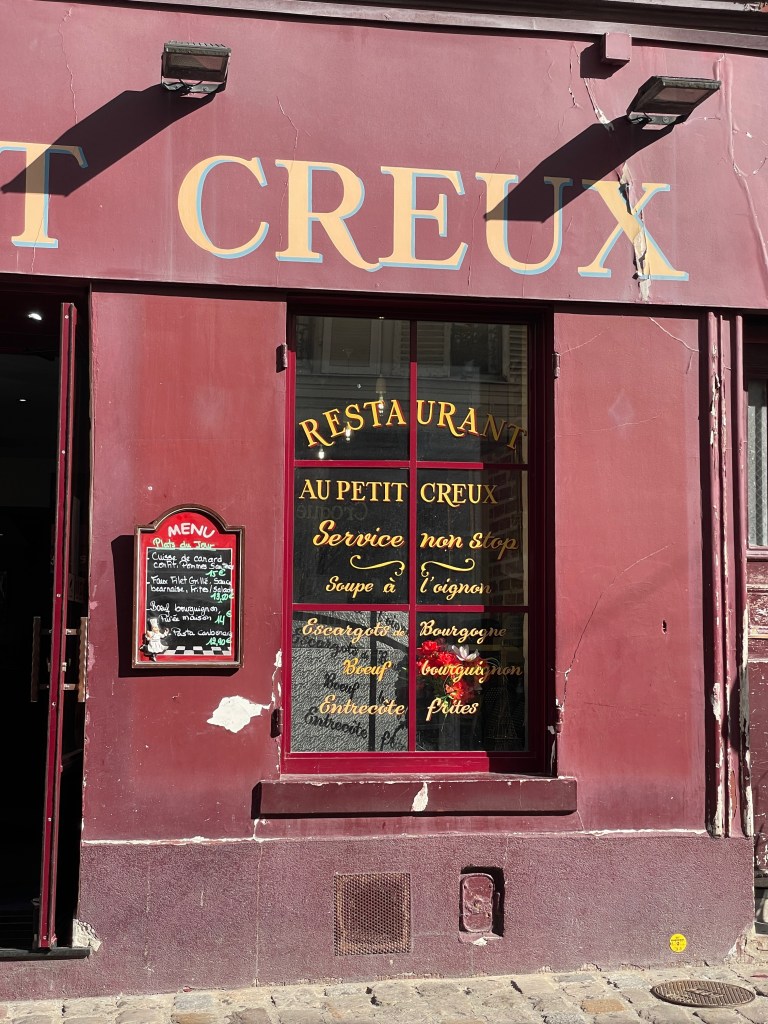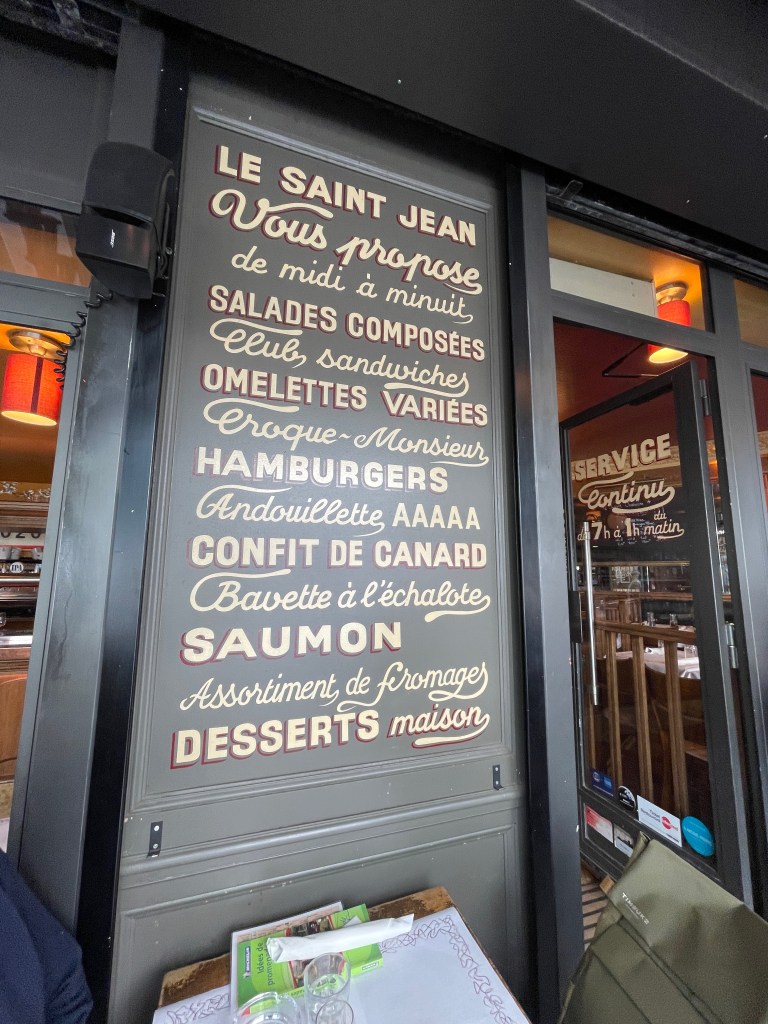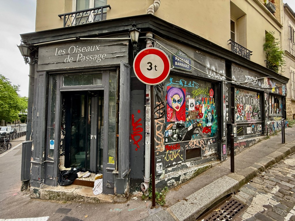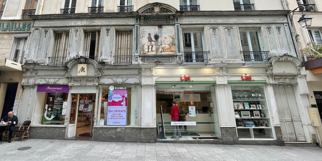De retour rue Montorgueil pour déjeuner et lécher les vitrines de toutes ces échoppes et restaurants souvent centenaires qui la bordent depuis les Halles jusqu’au Grand Rex. On ne se lasse pas de ce vieux Paris épargné par Haussmann et investi par l’humour et le charme des créateurs de tout poil. On refait les mêmes photos, parce qu’on regarde à nouveau et qu’on aime ce qu’on voit.