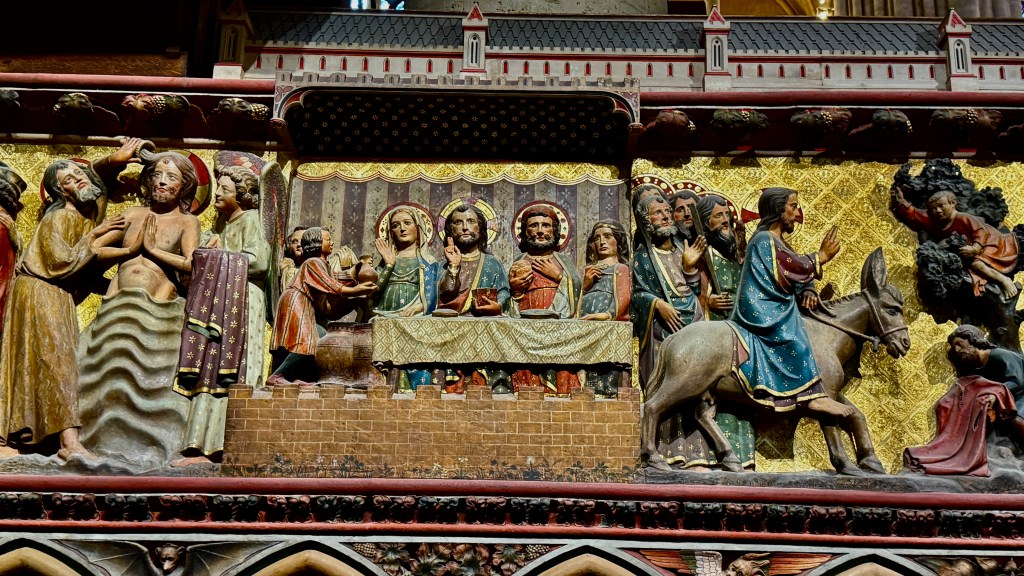Il faut réserver pour visiter, sinon on fait la queue. Mais cette queue de près d’un kilomètre, telle que celles de chez Disney, avance au pas d’un homme tranquille et une vingtaine de minutes suffisent pour qu’on entre dans le chef d’oeuvre. La foule y est considérable, mais l’altitude de la nef absorbe la multitude qui, subjuguée par la grandeur de la cathédrale, se tient bien, visite avec recueillement.
