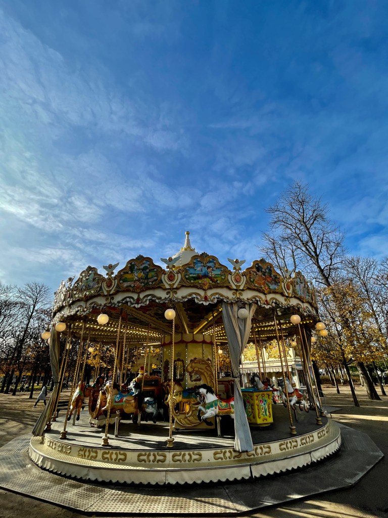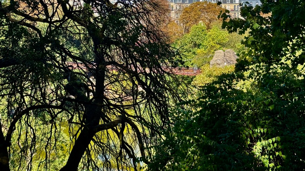Le parc est presque désert. Les attractions foraines sont fermées, le marché de Noël n’est pas encore ouvert. Aucun enfant ne joue avec des voiliers sur les bassins. La serveuse du café semble sortie d’un tableau de Renoir.
