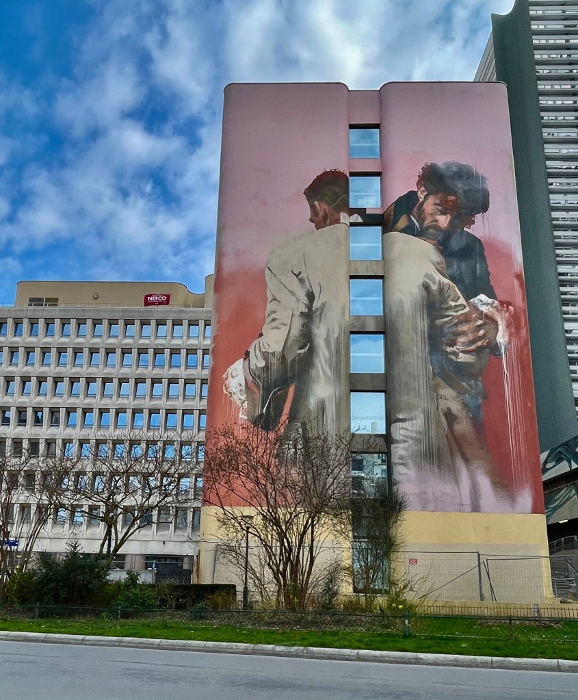 Le XIIIème arrondissement de Paris n’a jamais été particulièrement choyé par le destin. Au commencement, s’être marié dans le XIIIème, c’était ne pas s’être marié car l’arrondissement n’existait pas encore. Puis ce fut un quartier ouvrier où des immeubles noirs étaient planté au milieu des friches et des masures. Puis vinrent les bâtisseurs qui, dans les années 60, truffèrent le quartier de de tours de cent mètres plantées sur des dalles aussi anonymes et inaccessibles que battues par les vents. On finit par y installer la tour de l’université de Tolbiac. Puis, après 1975, les Vietnamiens débarquèrent en masse et s’emparèrent de tout ce qu’on appelle à tort le quartier chinois puis qu’on devrait plutôt dire Saigon sur Seine. Puis on y érigea une bibliothèque aussi grande qu’idiote et laide et Jean Nouvel acheva le travail avec ses deux tours de guingois. Le quartier est traversé par les voies des gares de Lyon et d’Austerlitz, ce qui, bien-sûr, n’arrange rien. Curieusement, la vie a quand même pris et s’est développée dans le treizième. Les Asiatiques sont comme les plantes sauvages qui trouvent leur place partout et se développent sur les pires sols. On va dans leur quartier se régaler et se dépayser sans lever les yeux sur les verrues de béton qui truffent l’endroit. Puis, depuis quelque temps, un nouveau phénomène se produit, tirant parti des immenses façades nues. Des visages, des silhouettes, des scènes immenses essaiment sur les façades, redonnant vie à cette architecture sans âme qu’on voudrait, aujourd’hui, célébrer. Et cela nous rappelle que la vie, quoi qu’il arrive, trouve toujours son chemin.