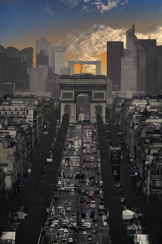 Comme un voyageur émerveillé, je me plais à la photographier. Pourtant je souris toujours en voyant les dizaines de touristes se prenant en photo sur fond d’Arc de Triomphe en haut des champs Élysées. Combien de millions de fois la même photo ?