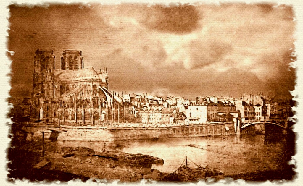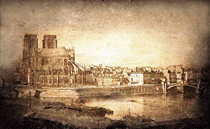 Voici un exemple qui prend son origine dans la plus ancienne photo de la ville, un daguerréotype de 1839 qui montre, en passant que Notre Dame n’avait pas de flèche avant qu’un autre rêveur ne lui en plante une sur le dos.
