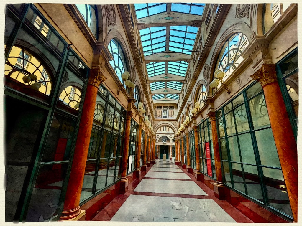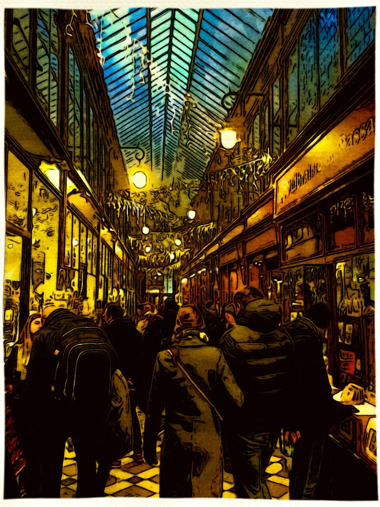 Parmi les endroits qui stimulent l’imagination et emportent dans des rêves et des voyages merveilleux, il y a les nombreux passages qui traversaient Paris et dont il en reste quelques uns. Tout d’abord, les beaux et très connus qui relient le Palais Royal aux Grands Boulevard. Magnifiques et très touristiques, ils sont très fréquentés. Les panoramas ont disparus, comme la plupart des attractions datant d’avant le cinéma, mais l’atmosphère demeure. On se sent envoyé dans un autre siècle.