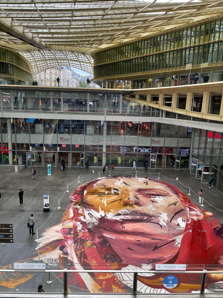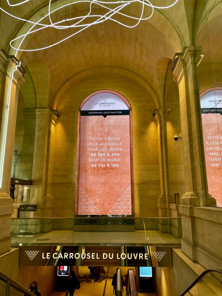 En remontant la rue, nous entrons dans centre commercial du Louvre, grandiose et un petit peu froid.