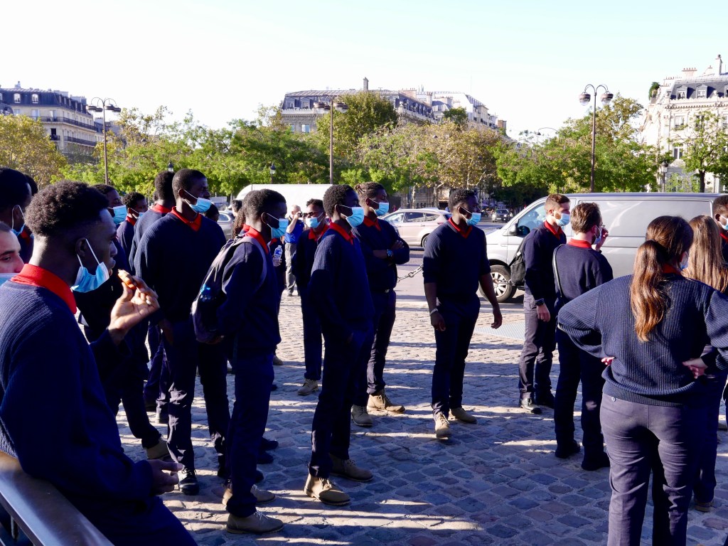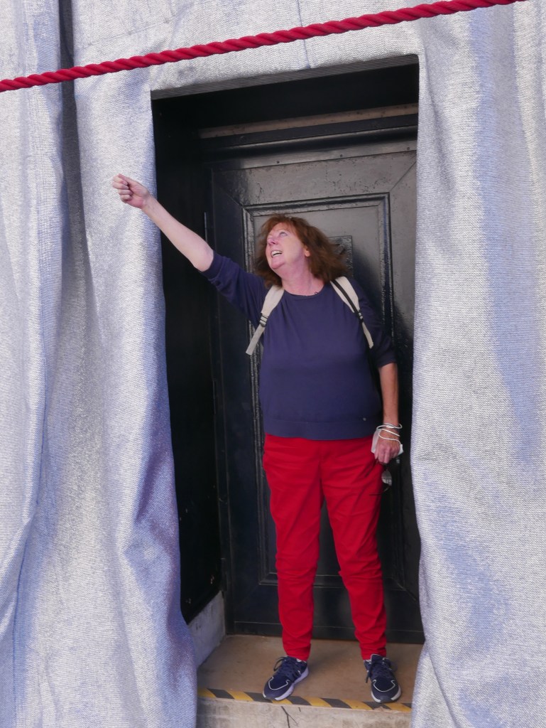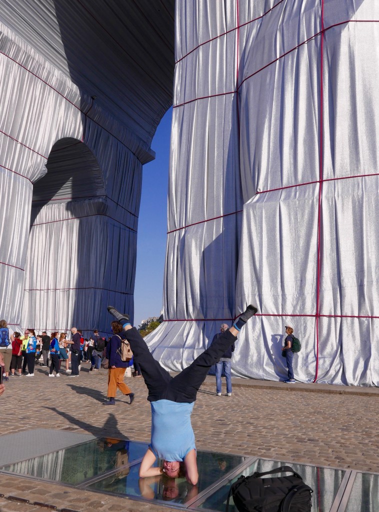 N’en déplaise aux pourfendeurs de cet emballement (oui, je sais !), recouvrir le monument l’habille, comme l’habit fait le roi. Tout le monde sait (ouais, bon !) ce qu’il y a en dessous de cet habit de lumière qui rayonne au soleil couchant, mais l’habit suggère ce qu’il cache, sublime la silhouette et la majesté du monument. Les badauds ne s’y trompent pas. Des milliers viennent voir cet Arc de Triomphe qui ne se voit pas. Cette esplanade le plus souvent déserte sur laquelle il se dresse, grouille d’une foule de touristes, de Parisiens qui viennent redécouvrir ce monument si connu qu’on ne le regarde plus, et même de patriotes couverts de médailles qui se sentent grandis. Mon Grand Père qui fut un héros de la Grande Guerre, décoré à la fois par les Français et les Allemands pour acte de grande bravoure et d’esprit humain, fut invité à ranimer la flamme alors qu’il dépassait les 90 ans. Et cette flamme brille sous les arches habillées d’argent.
