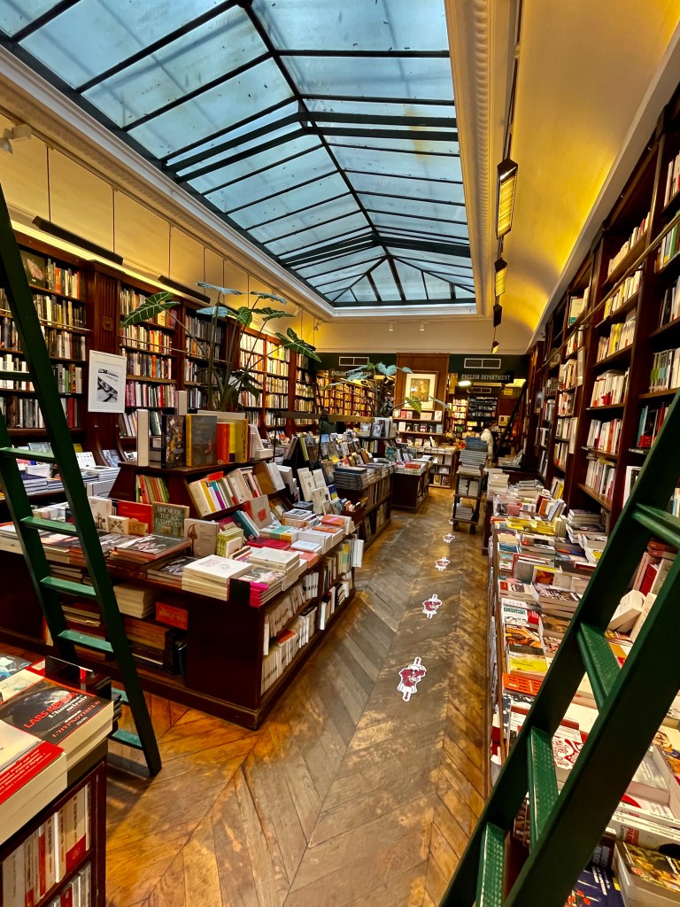 Escale à la librairie Galignani, endroit de rêve et d’élégance littéraire qui évoque Huysmans. La seule librairie que je connaisse où l’on se sert d’échelles.